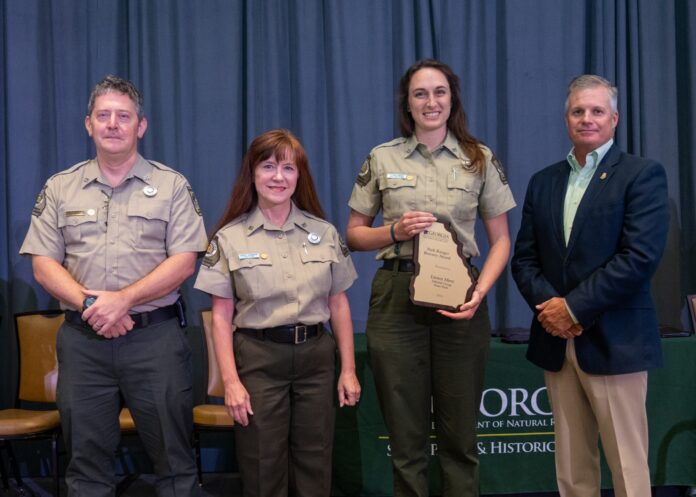 Tallualh Gorge State Park Manager Lieren Merz accepts Georgia's Park Ranger Bravery Award at DNR's annual Manager's Conference August 23, 2024. (Photo by Georgia Department of Natural Resources)