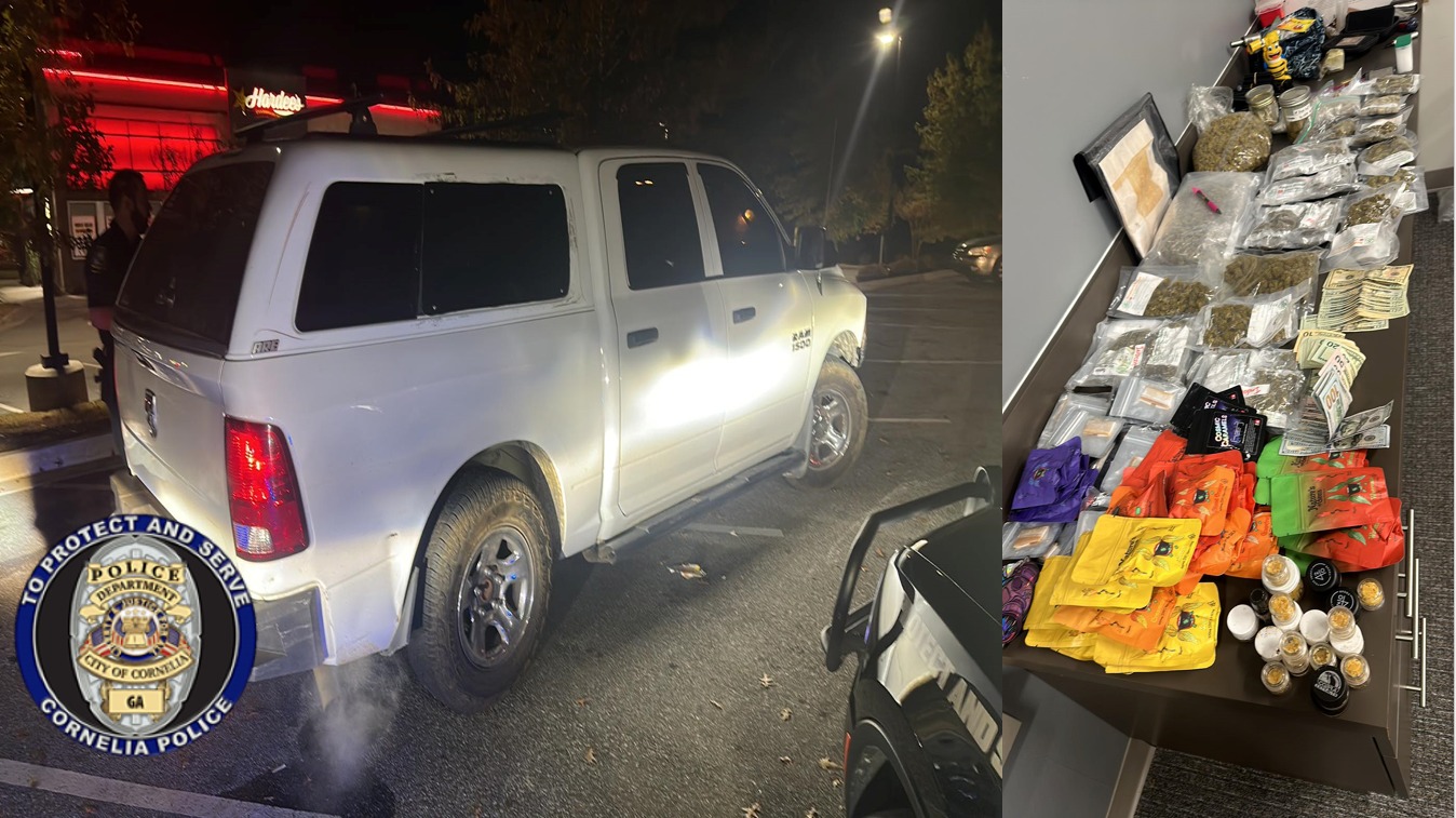 Cornelia police arrested the 57-year-old Atlanta man Sunday after they spotted him holding what appeared to be a cell phone while driving. After stopping the 2018 Dodge Ram 1500 truck for distracted and erratic driving, officers found a large quantity of suspected illegal drugs inside the vehicle.
