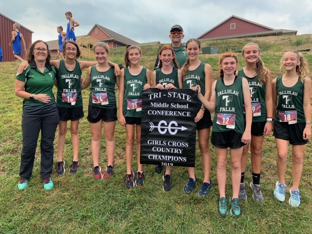 The Tallulah Falls Middle School girls won the 2019 Tri State Cross Country Championships Tuesday at Summit Charter in Cashiers, North Carolina. The team was led by champion Jenna Chesser, fourth-placer Josie Chesser, and sixth-place finisher Maggie Shelton, who didn’t let a recent injury curtail her deep competitiveness. Shelton ran her best race of the season to earn TFS Runner of the Meet honors.