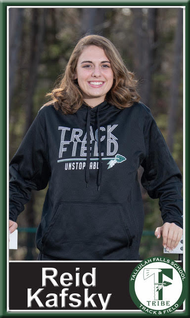 Senior Reid Kafsky of Clarkesville has been in swimming and track & field since sixth grade – a true TFS “lifer.” A state-qualifier all four years in swimming and both her sophomore and junior year in track & field, Reid is an exceptionally positive team influence whose motto is to do whatever it takes to help her team. Cliche aside, every team needs a Reid Kafsky, someone who encourages, works hard, sets goals yet pushes others to do their best. Humble, outgoing, and persistent, Reid brings life to the team, a refreshing aura of living today as if it is both essential and fleeting. A sprinter, jumper, relay leg, Reid was also learning to hurdle this season so she could better help the team at Area and State.