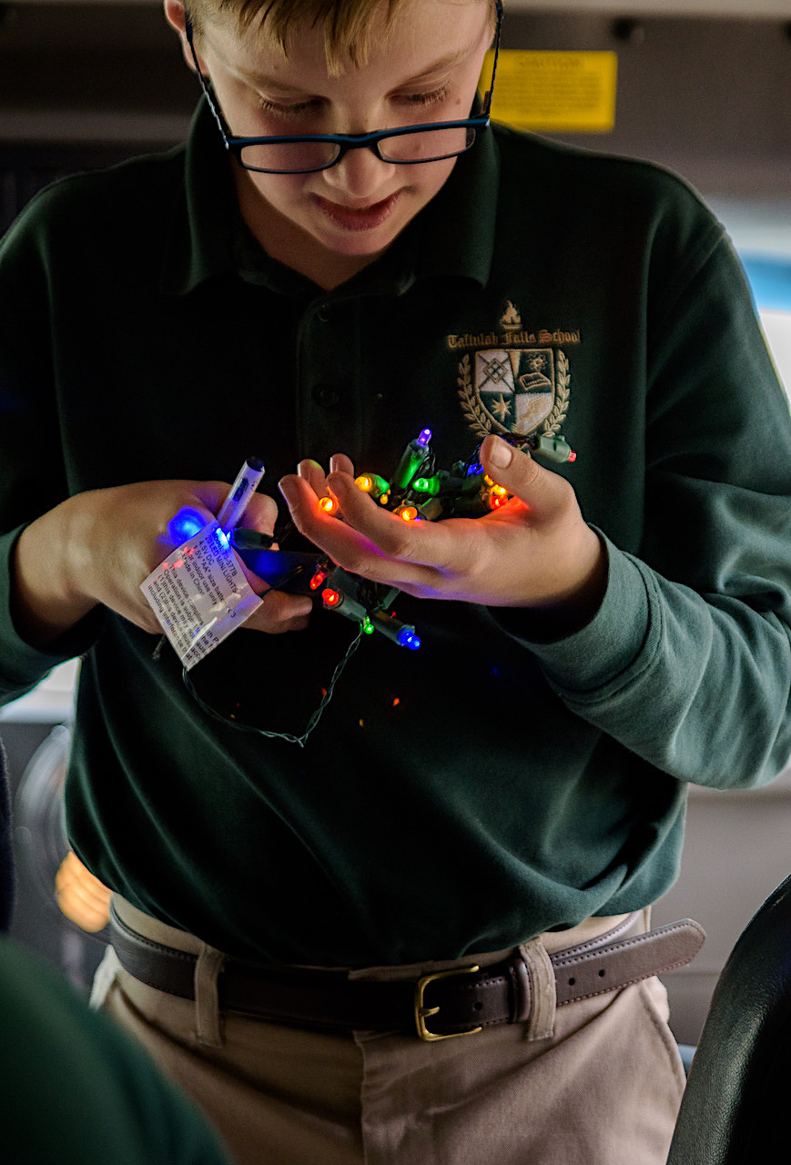 The initial brainstorm from the group included installing an inflatable Santa Claus on the roof of the bus and to hang garland on the outside of the vehicle. “That won’t work,” Sternhardt told them. He encouraged them to talk it over and come back with an alternate plan to decorate the interior of the vehicle.
