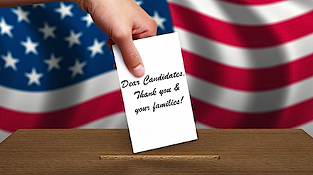 But I want to say Thank You! To all of you brave enough to run for office…brave enough to stick your lives on the line…to expose who you are and all your warts…to try to make a difference.