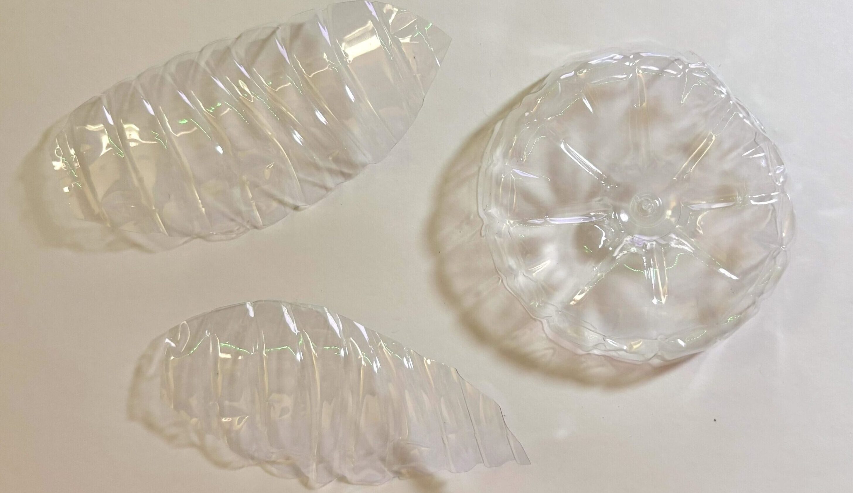 b. You can use all parts of the plastic to make unique pieces, for example, the bottom of a plastic bottle can resemble a flower.