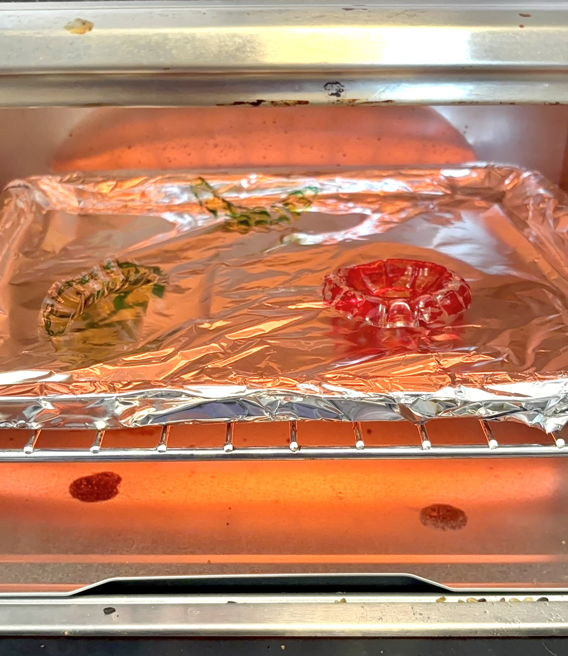 4. Preheat the oven to 350° – NOTE: Melting plastic can create fumes, so make sure you do this in a well-ventilated area. You can wear a mask for extra protection.