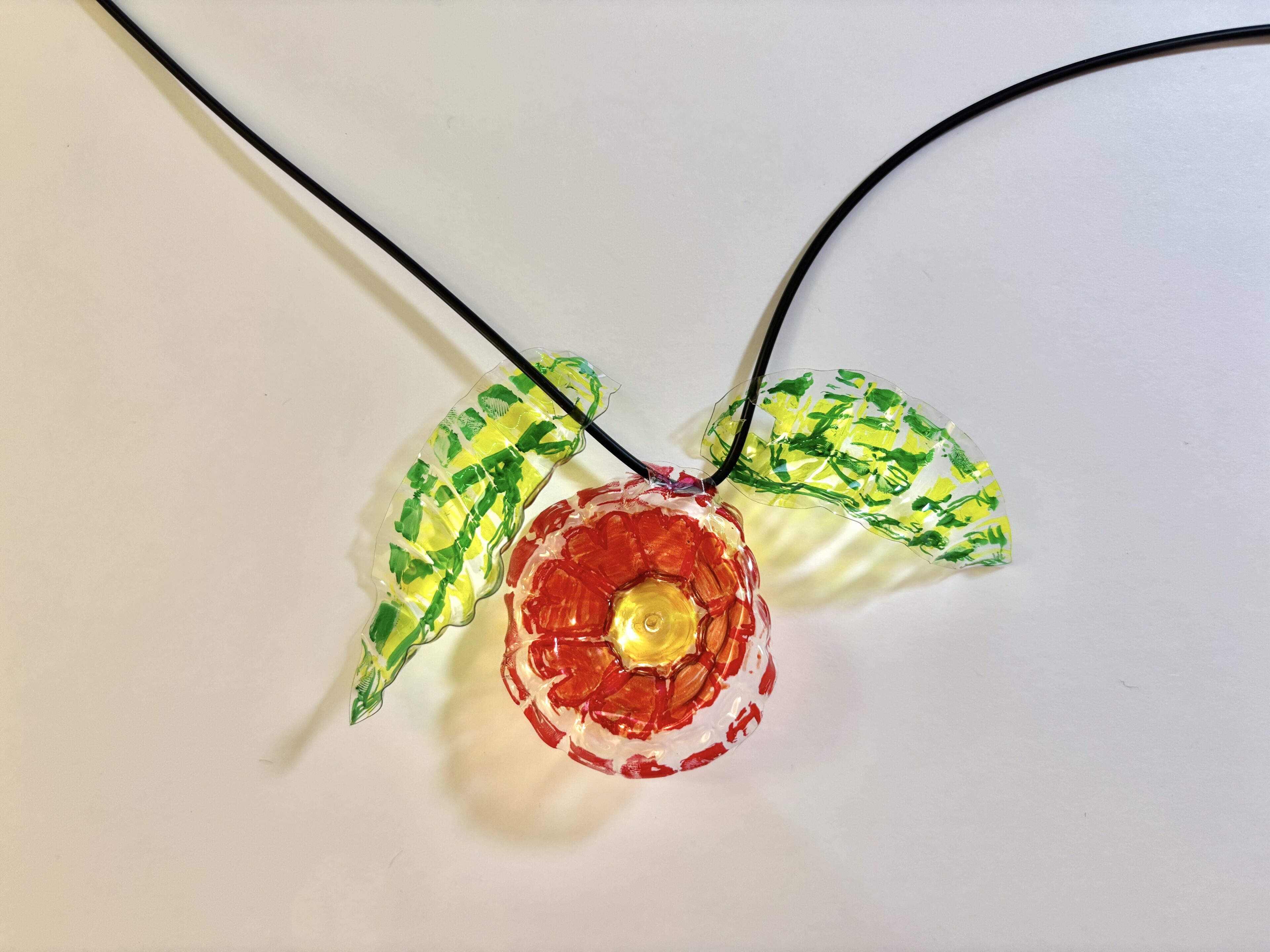 9. Once the plastic is cool, use string to turn your creation into a necklace or a keychain.