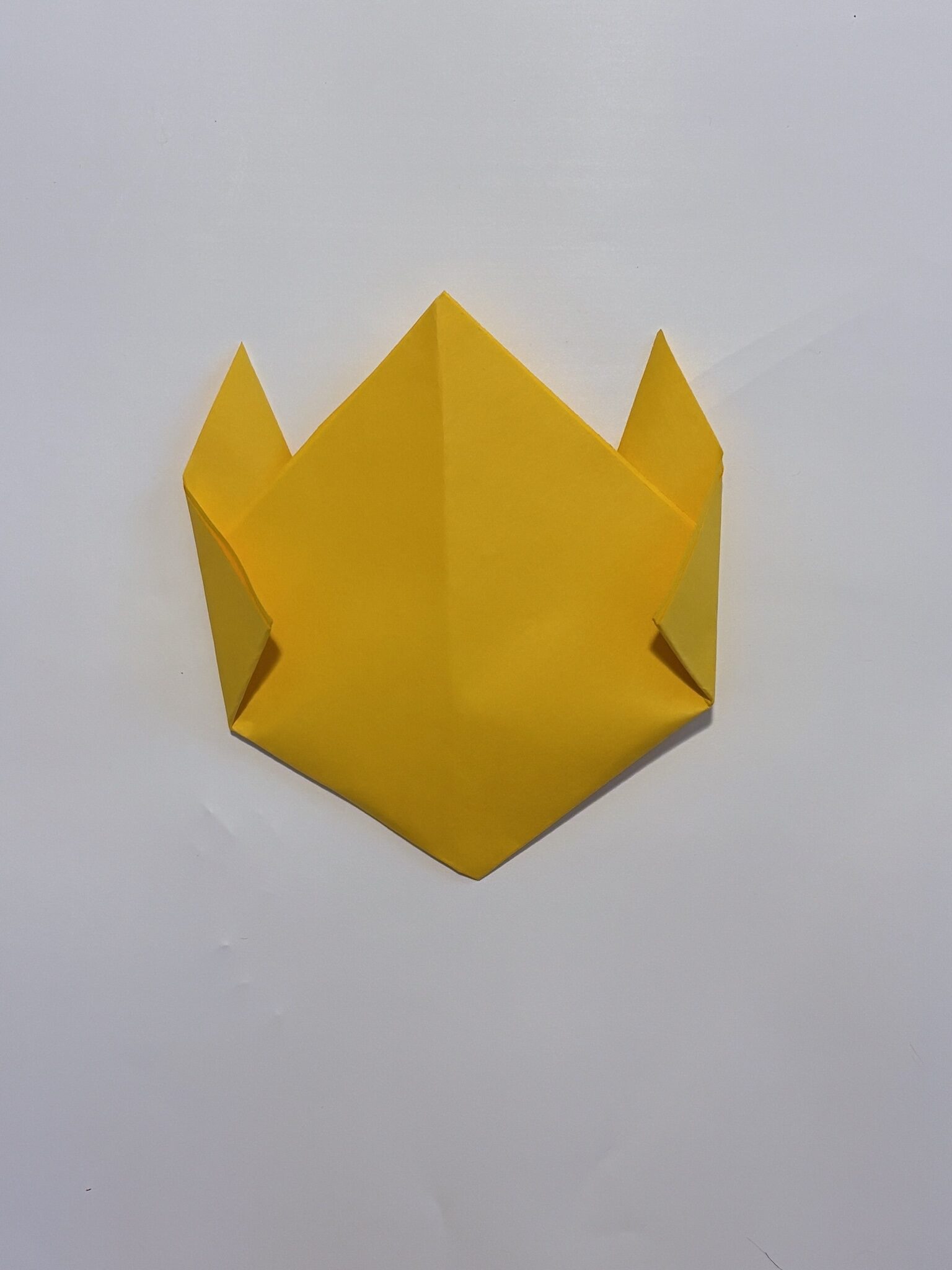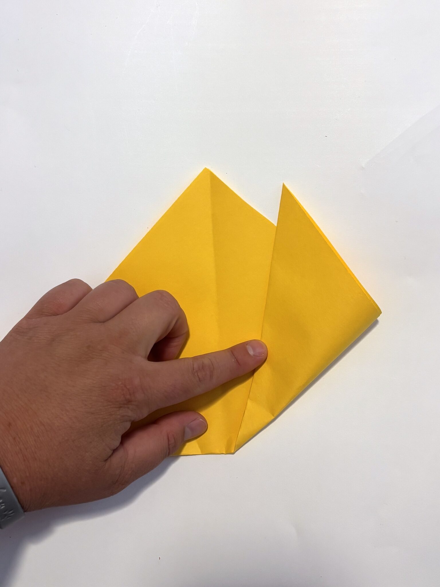 11. Repeat this step one more time with the right and left corners. Folding towards the diagonal crease every time.