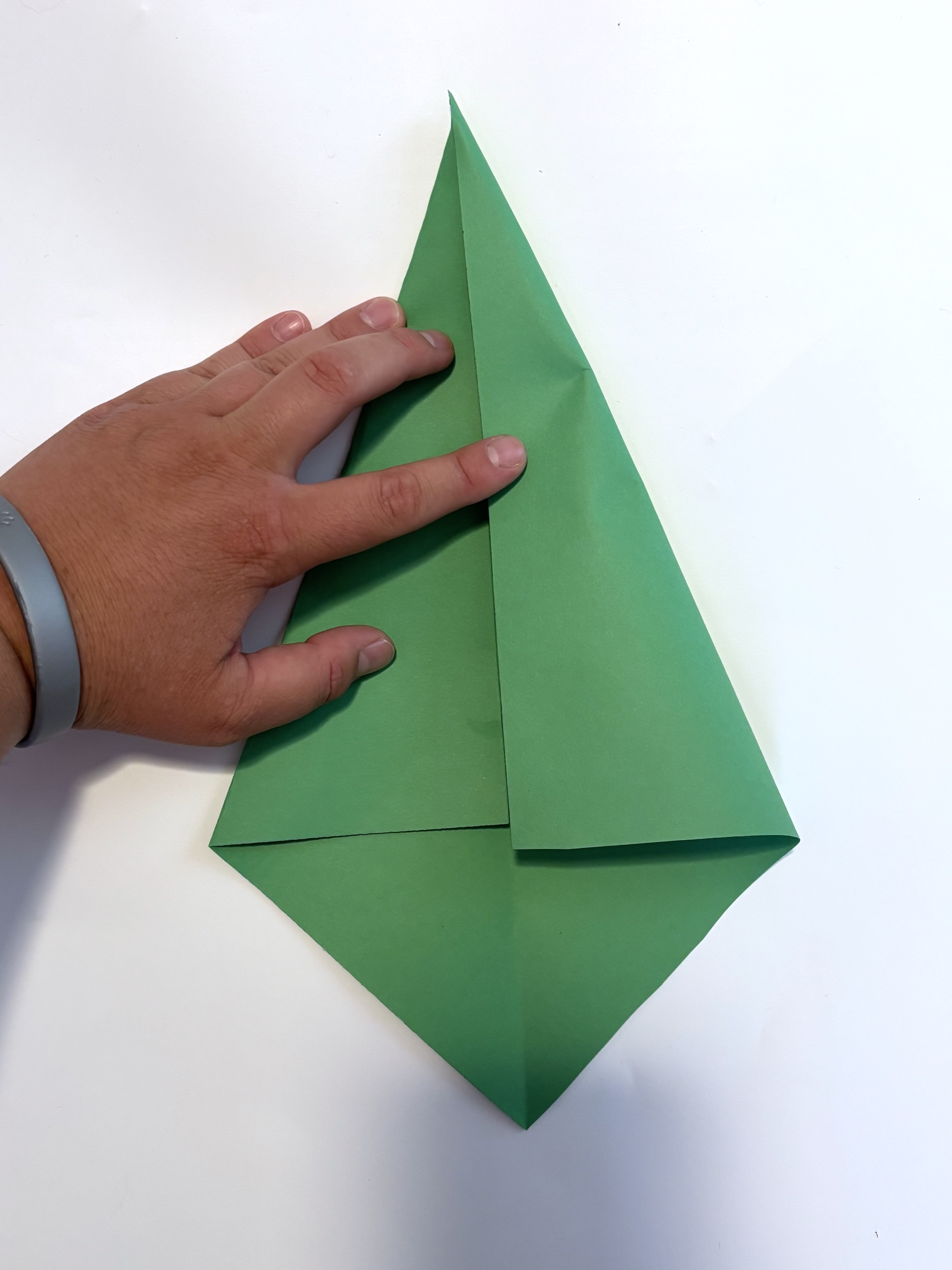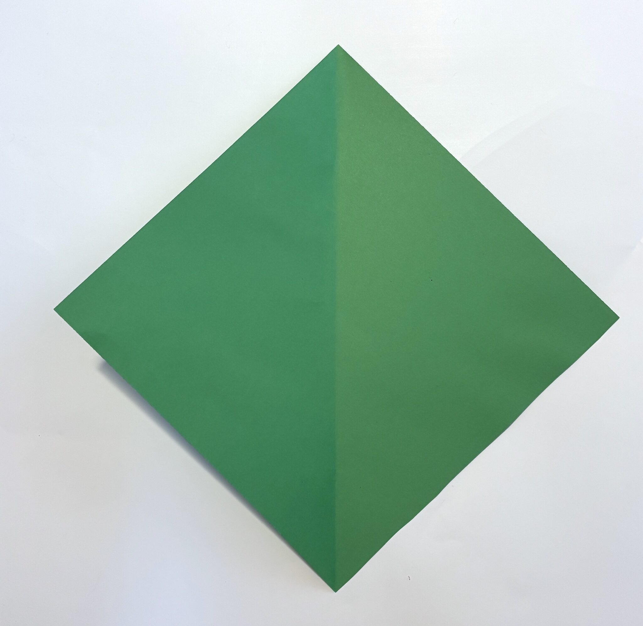12. Fold your diamond in half from one long point to the other making a horizontal line.
