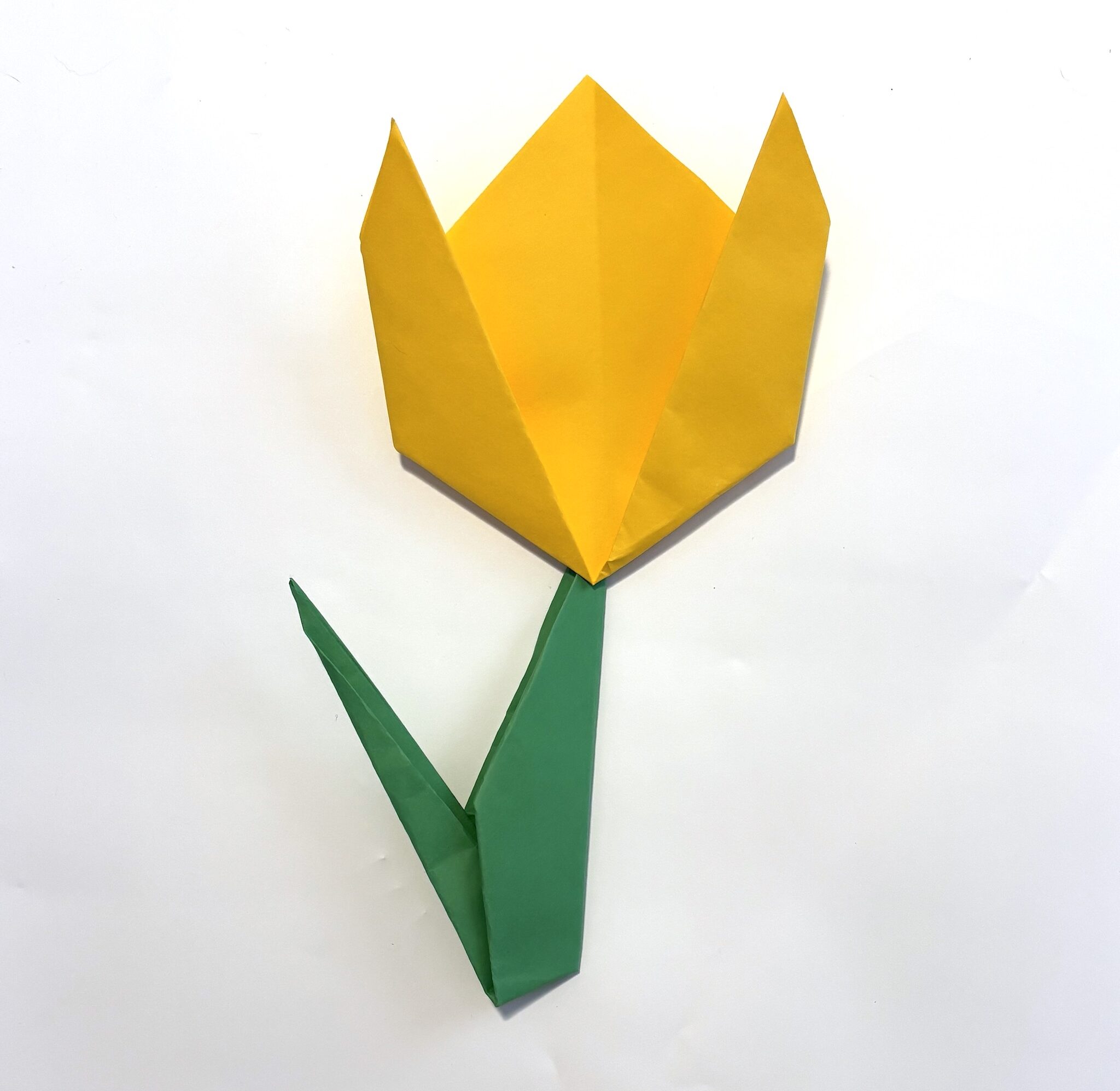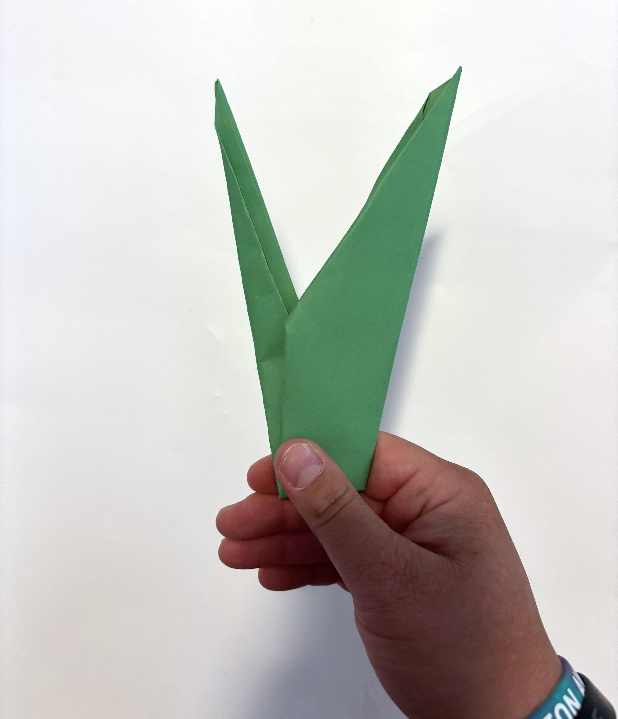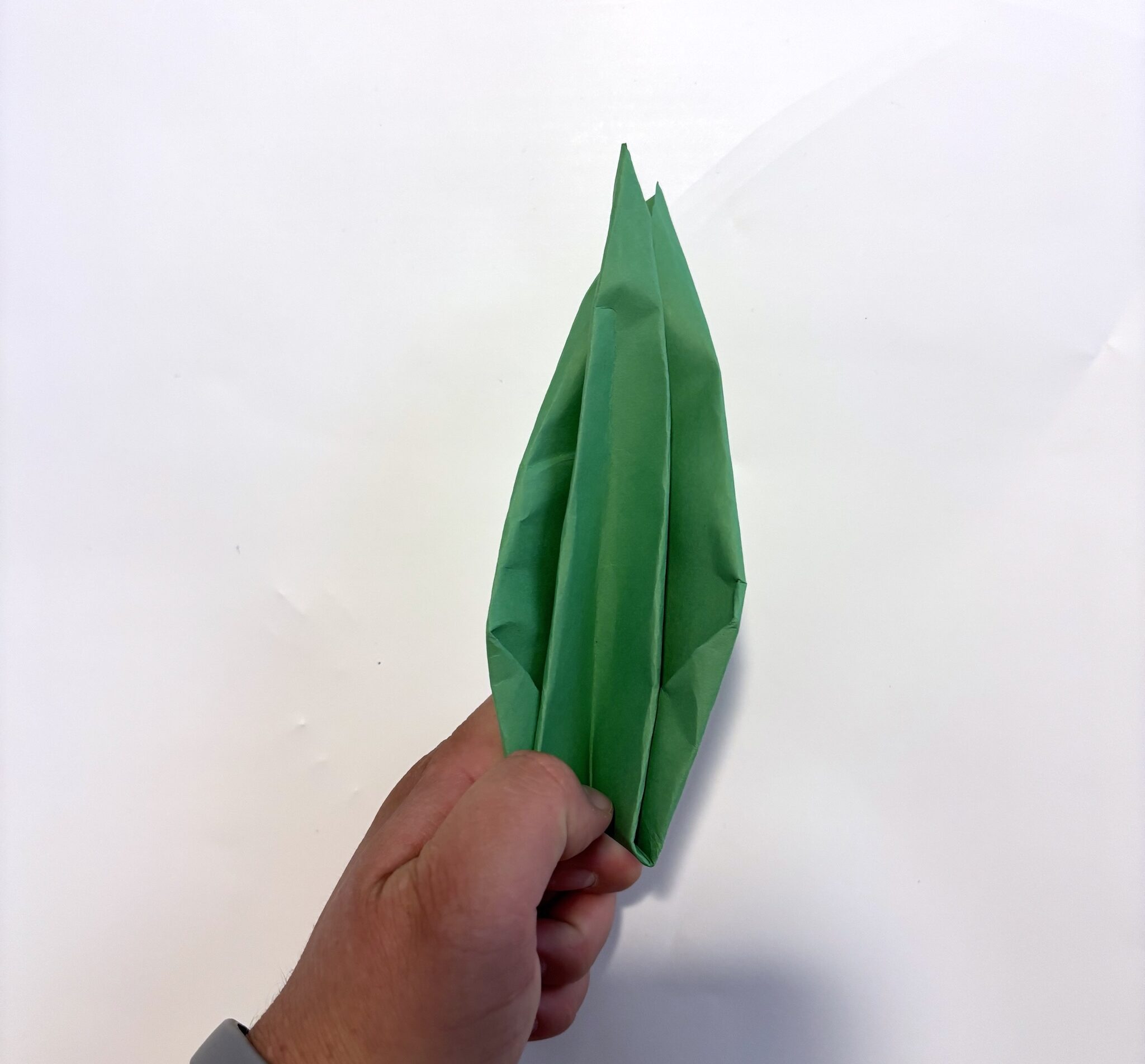 14. Slightly pull the two points apart making a leaf. Press down at the bottom to crease the fold.