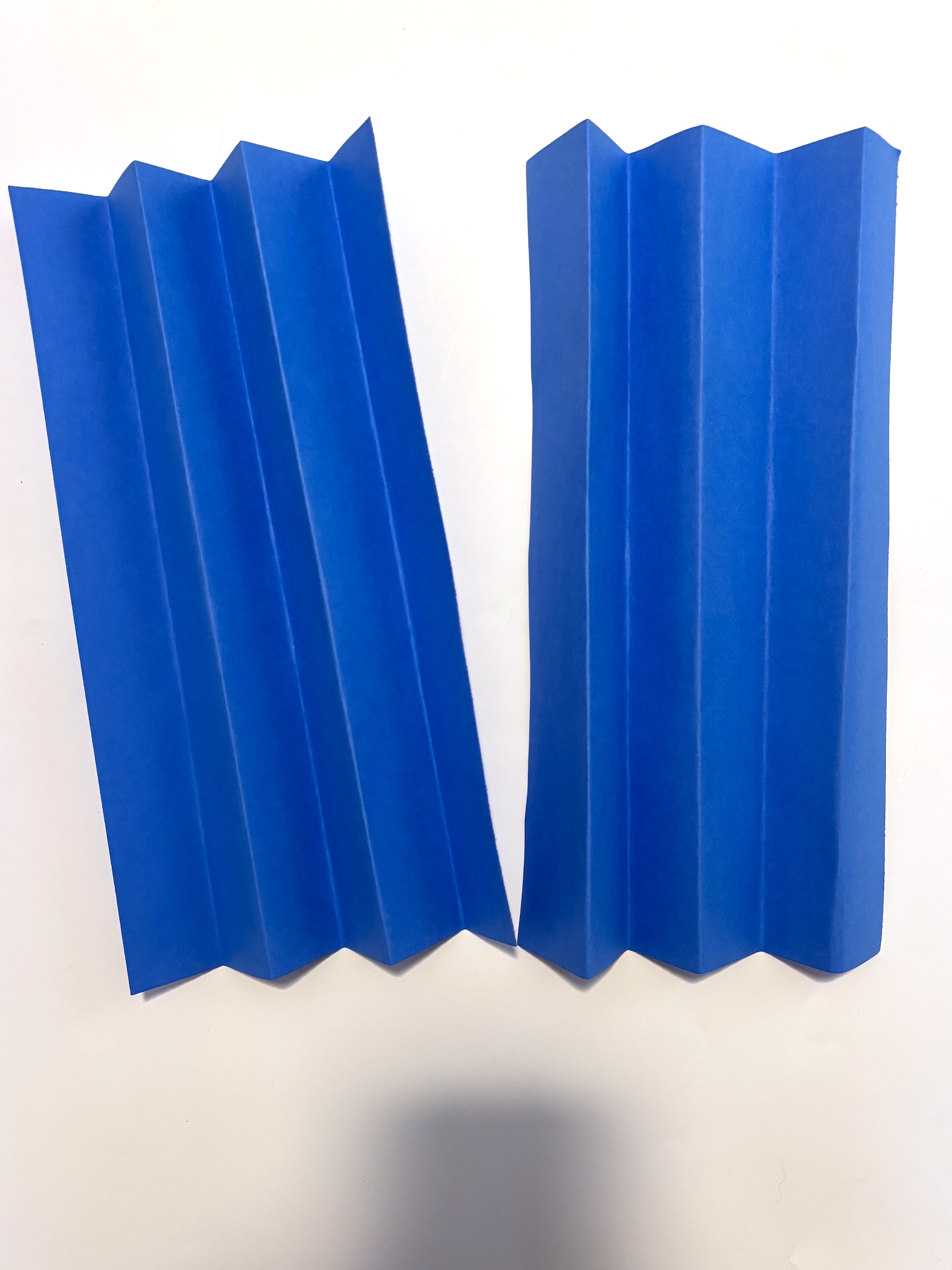 2. Accordion fold your paper. This means fold one inch of your paper vertically. Then repeat this step in the opposite direction. Continue to do this until you reach the end of the paper. Do this with both pieces.