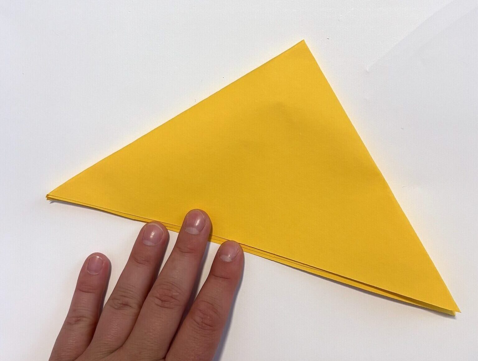 3. Turn the paper into a triangle by folding one corner diagonally to another corner.
