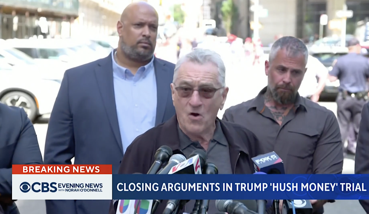 Just outside the Lower Manhattan courthouse during summations, the campaign to reelect President Joe Biden held a press conference featuring actor Robert DeNiro and two former U.S. Capitol Police officers who were overwhelmed by the angry mob of Trump supporters who stormed the building on Jan. 6, 2021.
