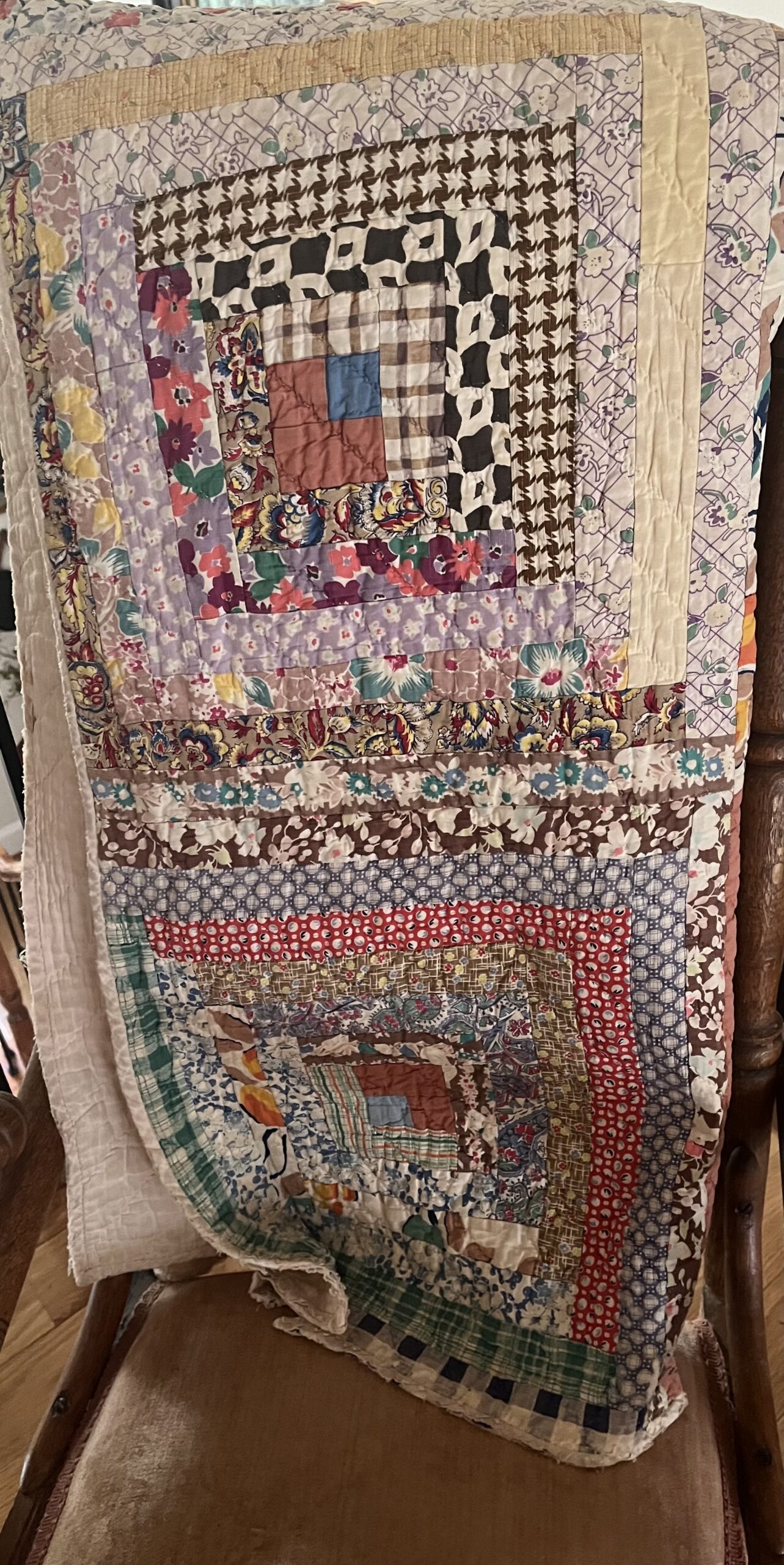 The other day, I was looking carefully at one of those old quilts hanging over the back of my grandmother’s rocking chair. I thought, “Shoot, maybe I could learn to quilt!” I bought a book and a few yards of muslin, and when I began to study what I needed to do, I realized quilting was way over my overdoing talents.