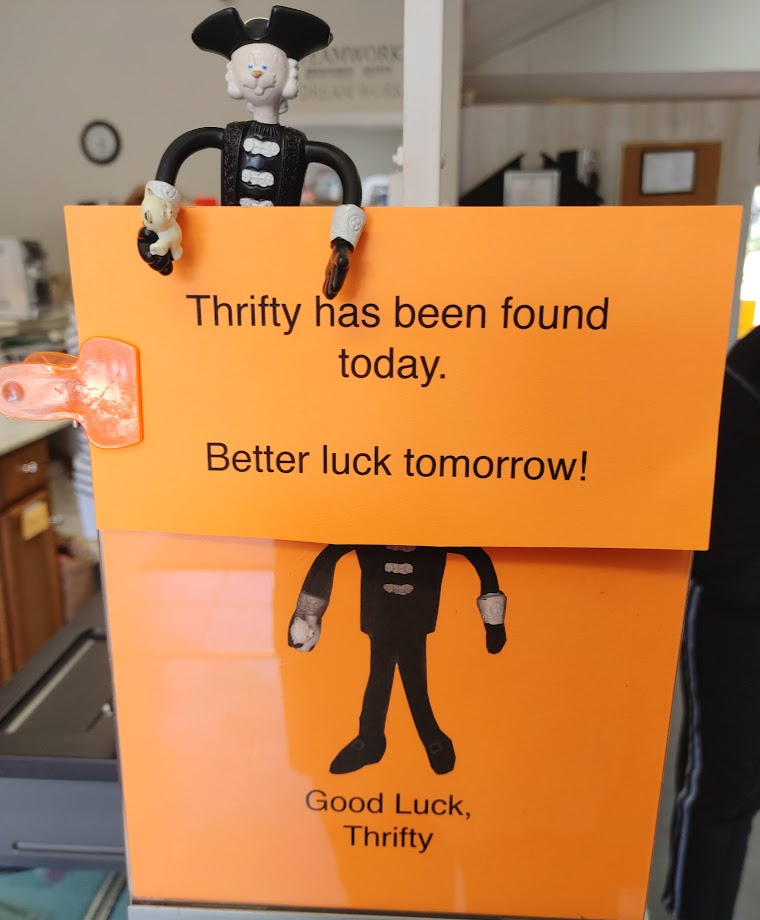 So here’s a super-fun insider tip: get there early and look for Thrifty. The first to find him each day gets 20% off their total purchase!