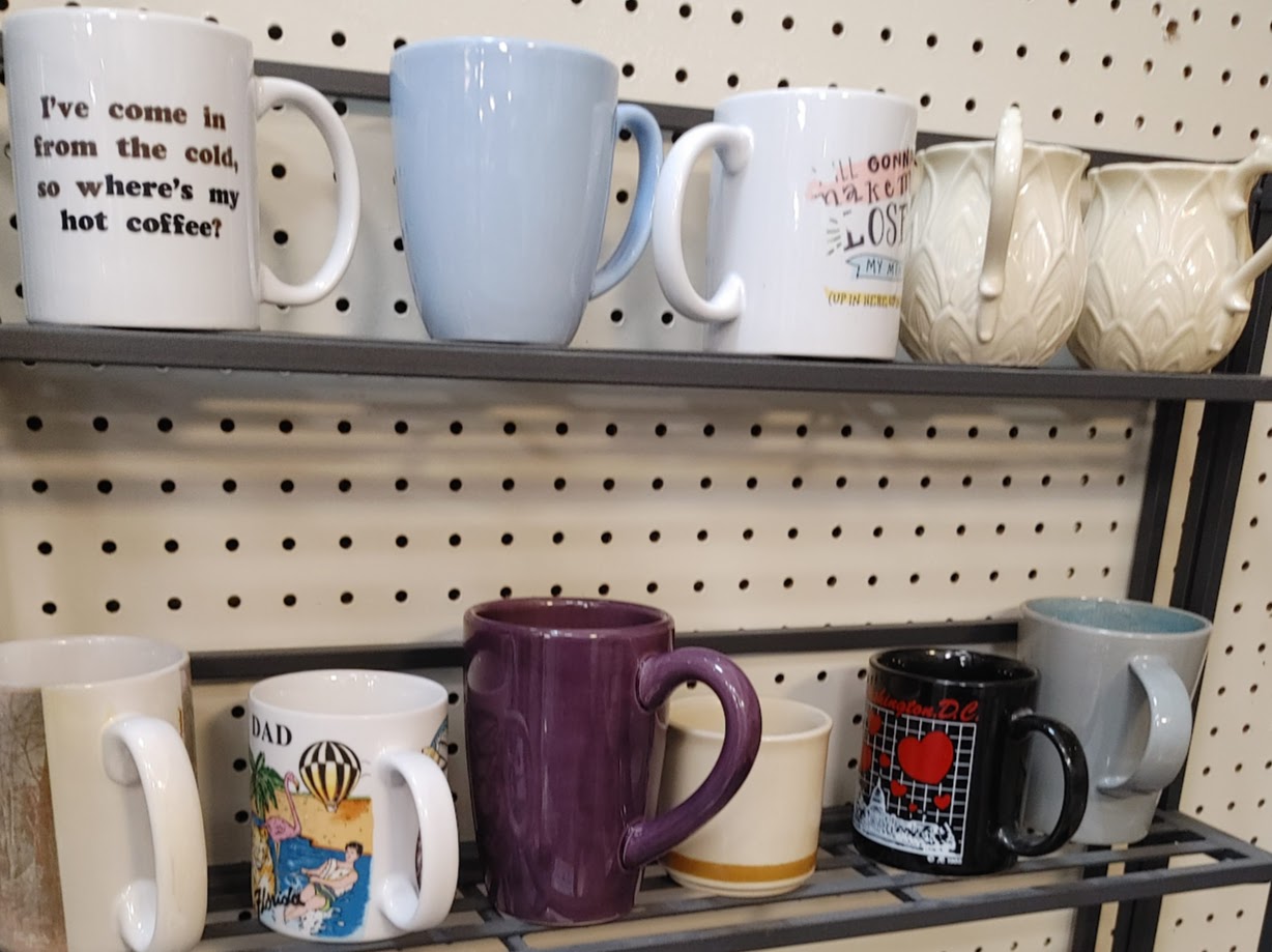 Nice, clean, unchipped mugs were another great find at this shop. Mugs, like books, make great staples in antique booths. If you are looking to re-sell mugs, make sure you have an attractive way to showcase them. I use a 1980s Nappa Valley wooden revolving CD rack for mine. It works perfectly for mugs! Mug-sized cubbies also work well.