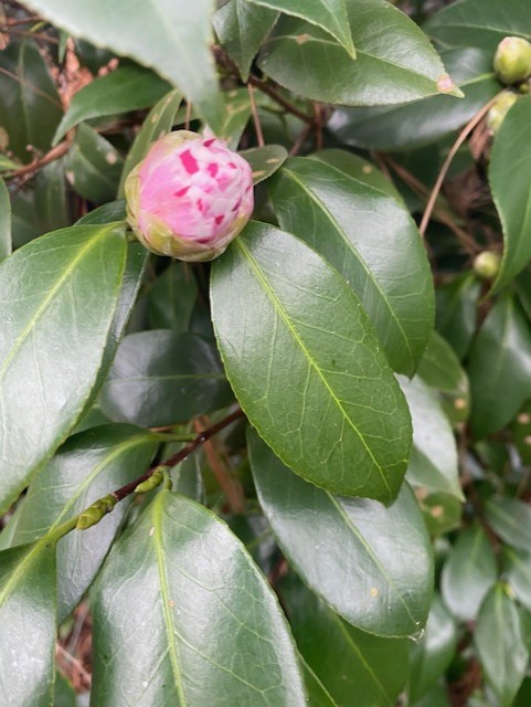 In November, I began to see buds on my camellia. I watched every day as they swelled. Just before Christmas, they began to bloom. It is loaded with buds which unfold almost daily. The camellia will continue her show for several more weeks.