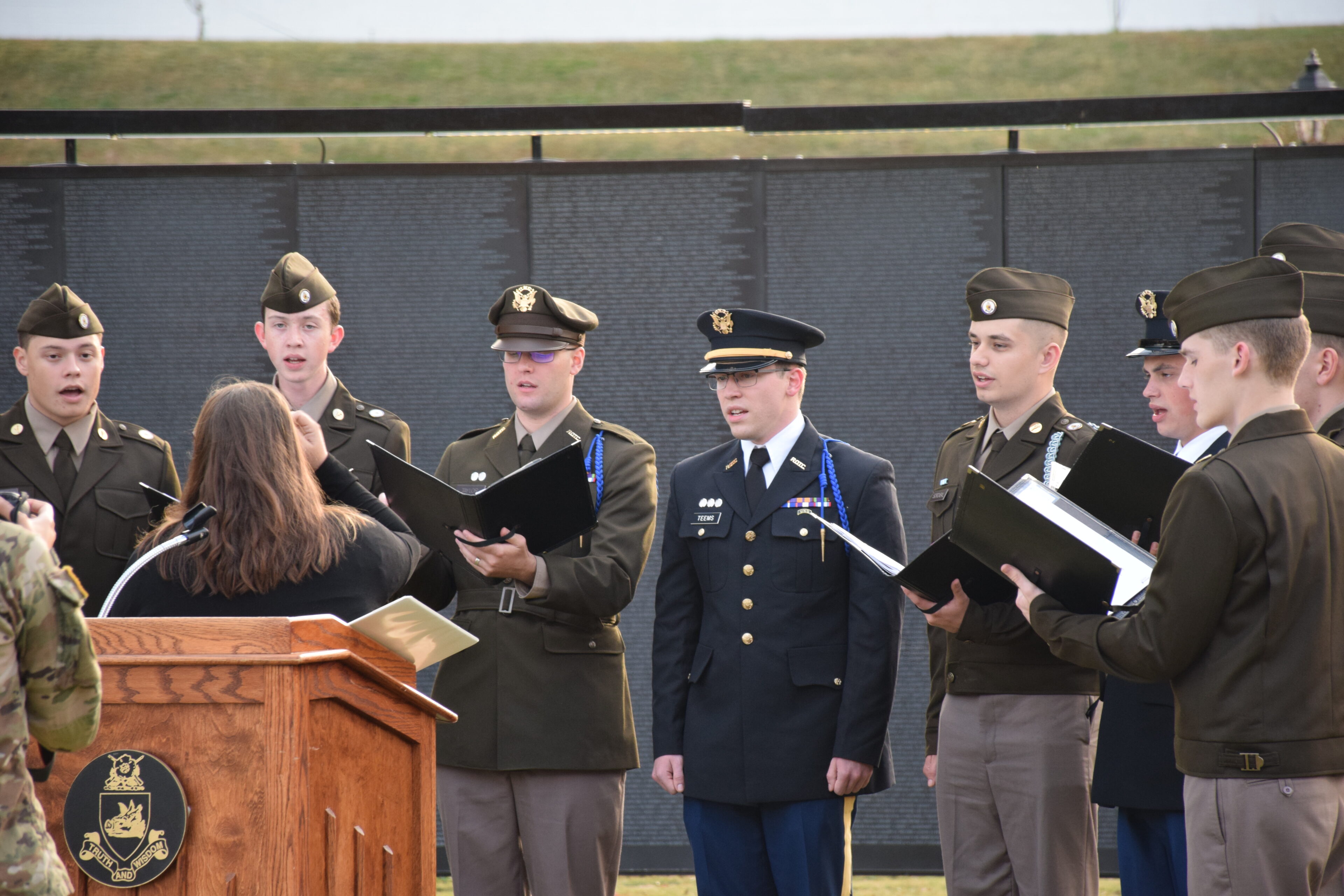 “Welcome Home,” chairman of the Lumpkin County Veterans Affairs Committee Bill Poole said to the veterans at an opening ceremony for The Wall That Heals exhibit on October 30 at the University of North Georgia in Dahlonega. Many gathered on the lawn in front of the replica Vietnam Memorial, remembering their own wartime experiences. They talked of those who never came home and expressed their gratitude to the men and women in the U.S. Armed Services.