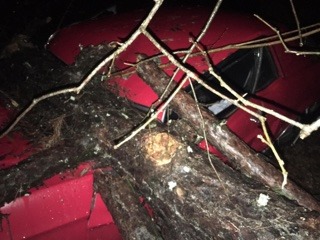 The severe weather struck Habersham County around 6:15 p.m. High winds coupled with heavy rain caused trees to fall across the county. One smashed a Demorest man’s prized vehicle.