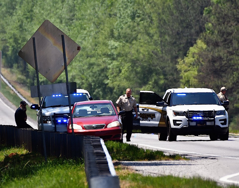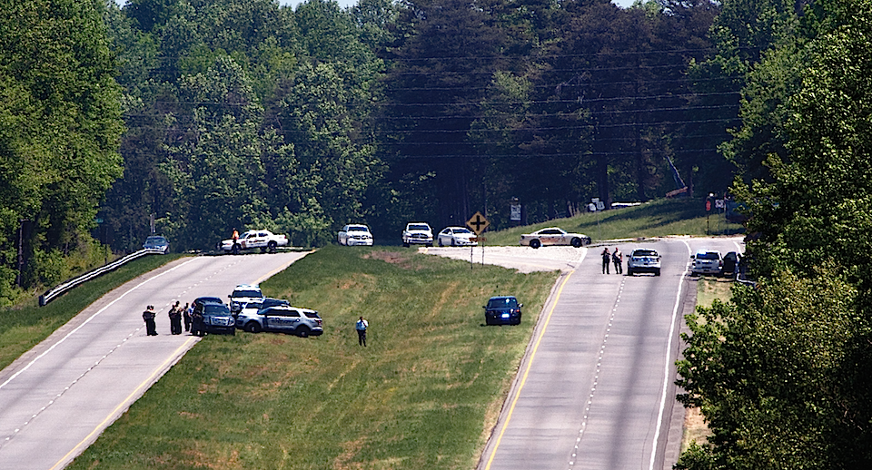 Hall County Sheriff’s deputies work the crime scene along GA 365 near Whitehall Road on Friday, May 4, 2018. (Photo courtesy Scott Rogers/ Gainesville Times)