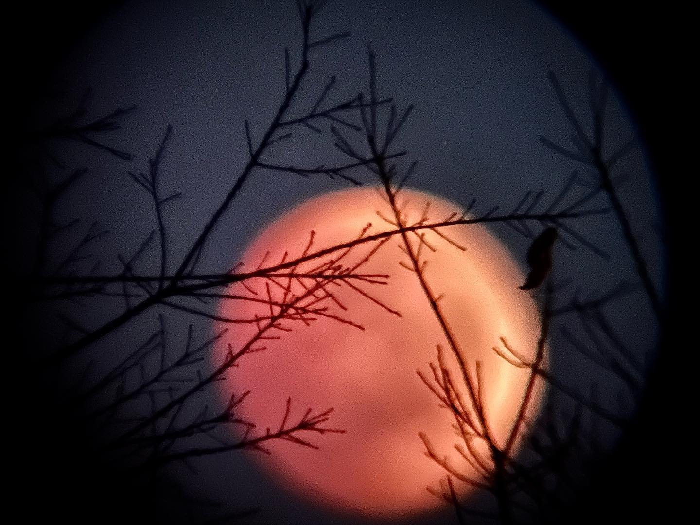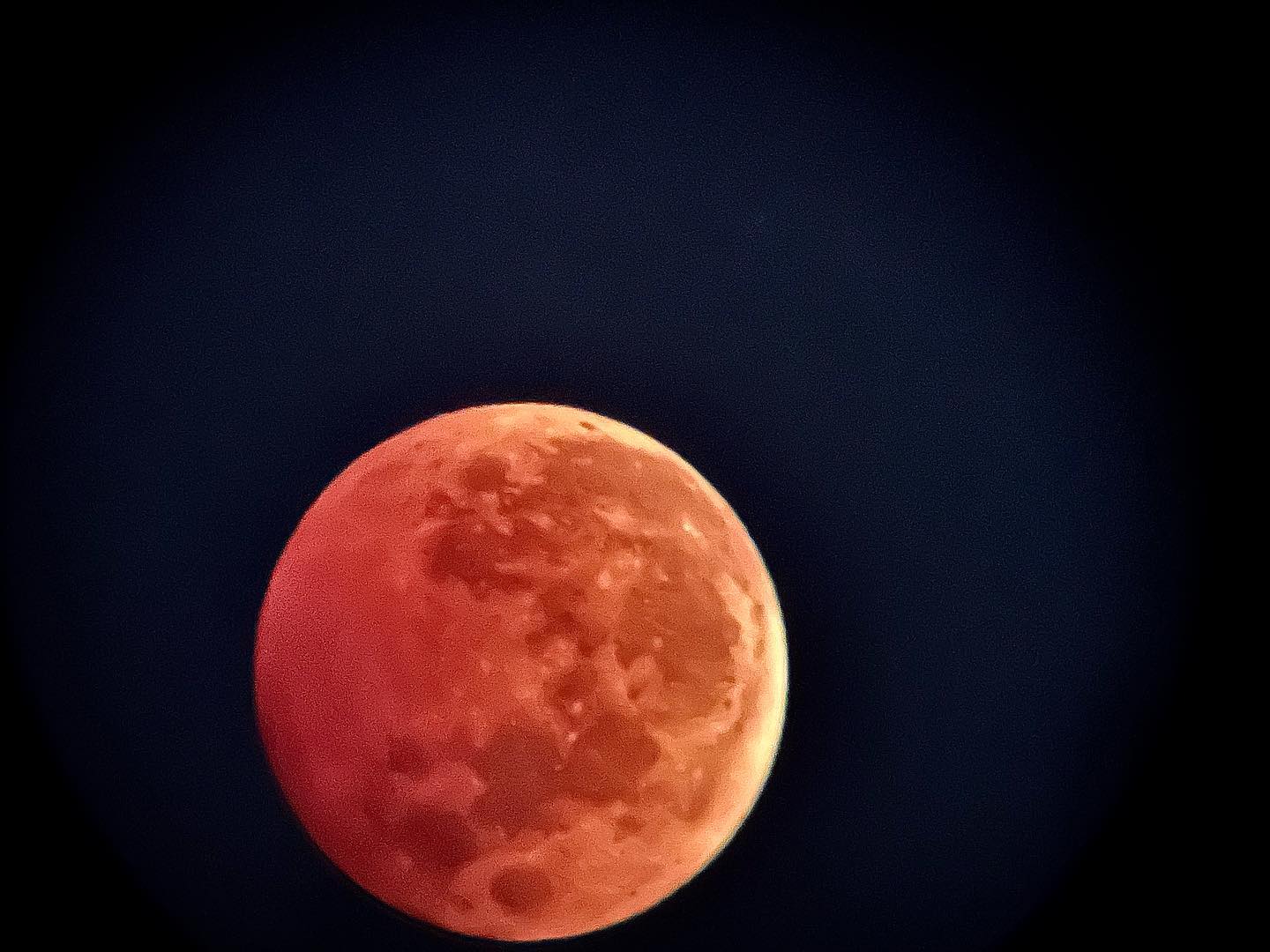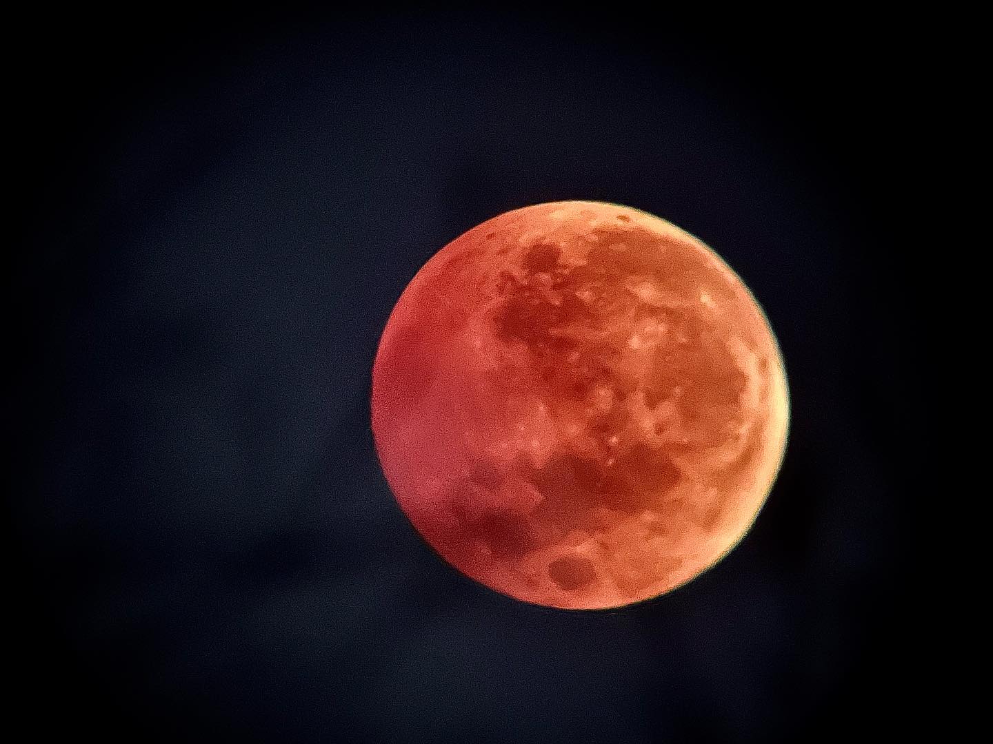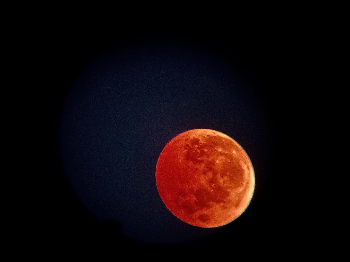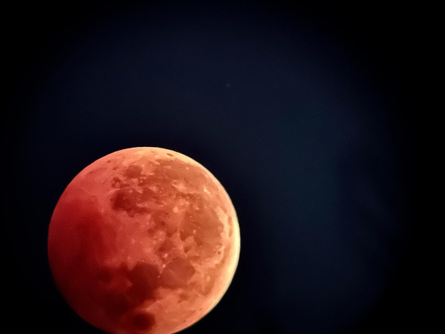 The eclipse began shortly after 4 a.m. and reached totality around 5:16 a.m. It lasted 85 minutes, during which time the darkened moon appeared a deep coppery red. The color comes from light refracting through the Earth’s atmosphere and onto the lunar surface.