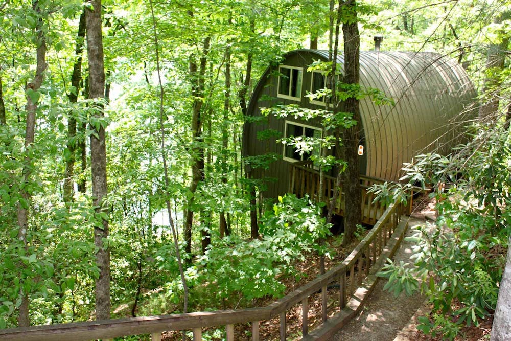 Unicoi State Park near Helen offer barrel cabins, which are totally unique. Each cabin is shaped like a wine barrel placed on its side and offer one or two bedroom options.