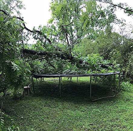 Patricia Garrett lives on the ‘upper end’. A tree fell on top of a trampoline in the family’s backyard in Hollywood on Monday. Fortunately, no one was hurt.