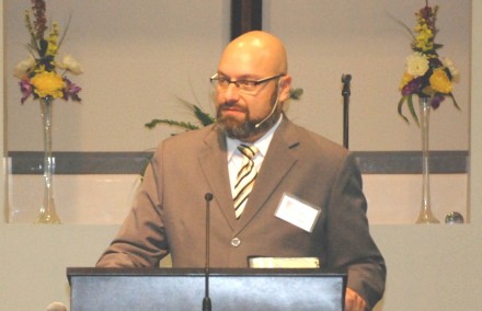 Truett McConnell College President Dr. Emir Caner speaks at Cleveland Care Center event.