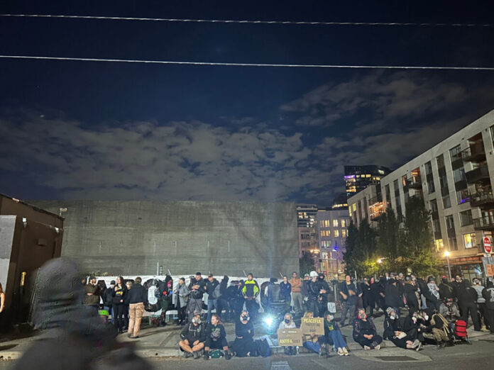 Protests have continued outside the Immigration and Customs Enforcement facility in Portland, with about 100 people on the streets Saturday night.