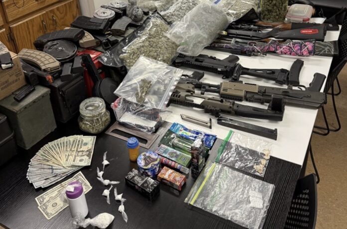 During the search, deputies say they uncovered 24 grams of cocaine, psilocybin mushrooms, LSD, approximately $1,400 in cash, and around nine pounds of marijuana. Authorities also seized 14 firearms, which police say was prohibited since Ledesma is a convicted felon.