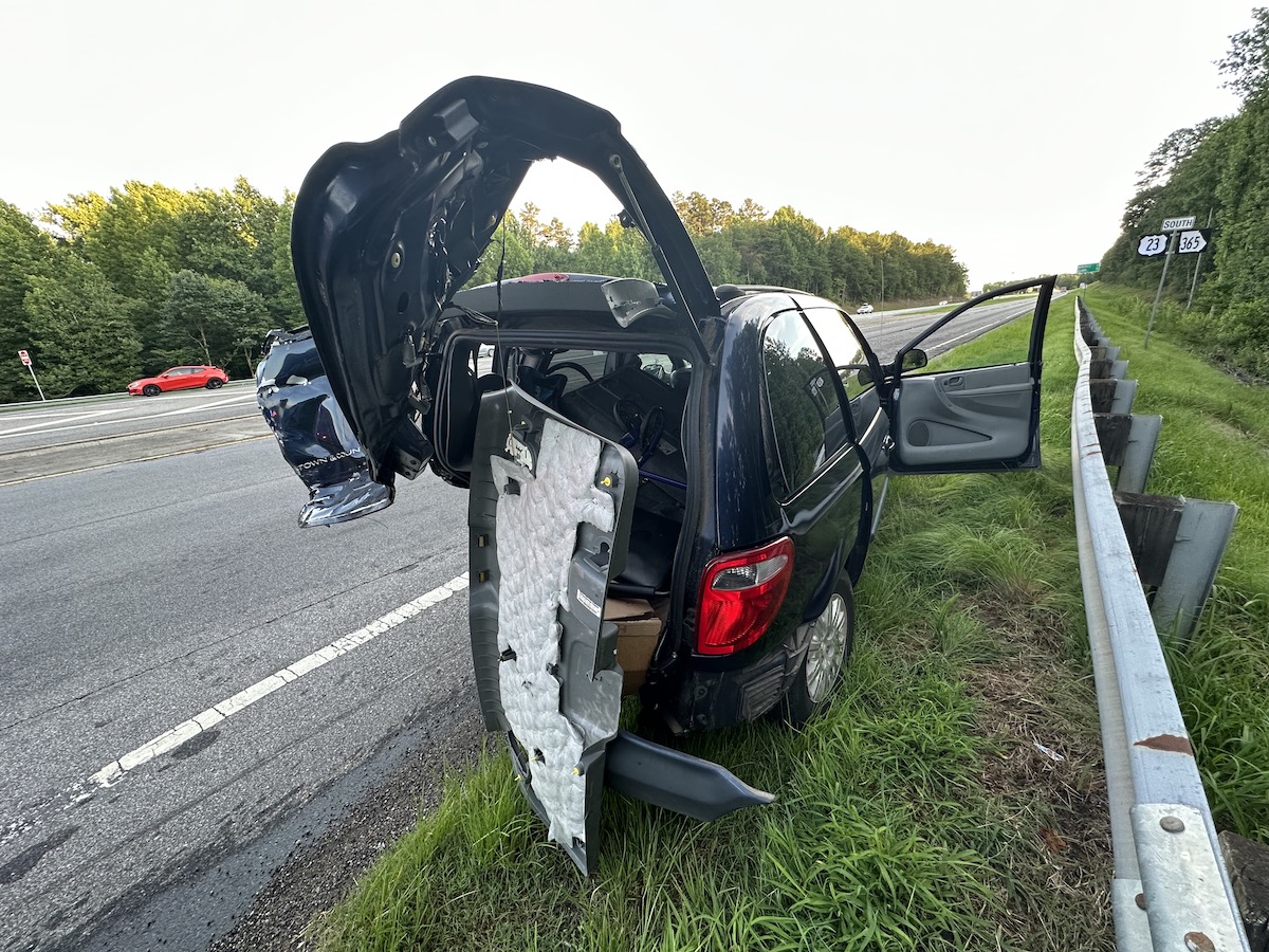 The wreck injured the van driver, 52-year-old Rodolphe Drolet and his passenger, 61-year-old William T. Thompson, both of Alto. Habersham EMS transported them to Northeast Georgia Medical Center in Gainesville with suspected minor injuries.