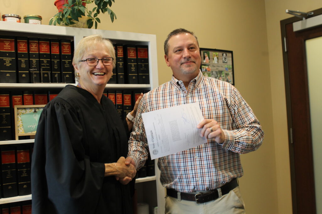 Habersham County Commission Chairman Ty Akins was sworn-in by Probate Judge Pamela Wooley at the courthouse Wednesday, Dec. 18.