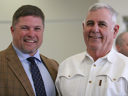 Piedmont College alumni Marvin Hudson, left, and Dock Sisk reminisce about how one simple question launched Hudson’s major league career.