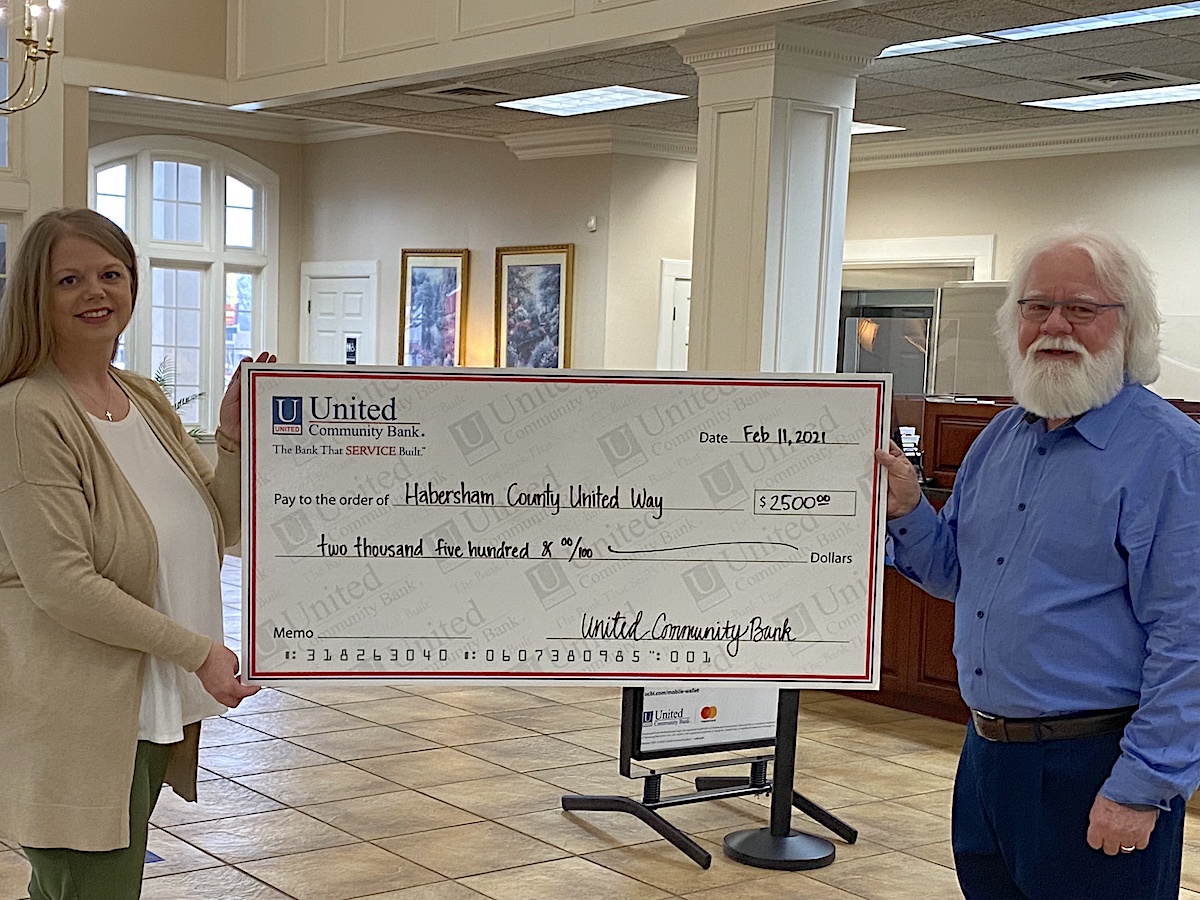 United Community Bank recently donated $2,500 to Habersham County United Way. The money will directly impact local agencies that meet critical food needs in the county.