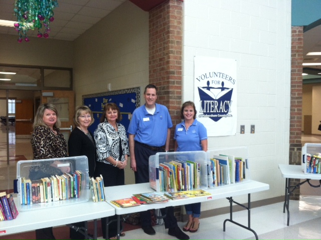 The Book Bank is one of the projects under VFL's Read to Succeed program. Books are donated then redistributed to children and adults in Habersham County. VFL volunteers from South State Bank recently handed out books to children at Fairview Elementary School.