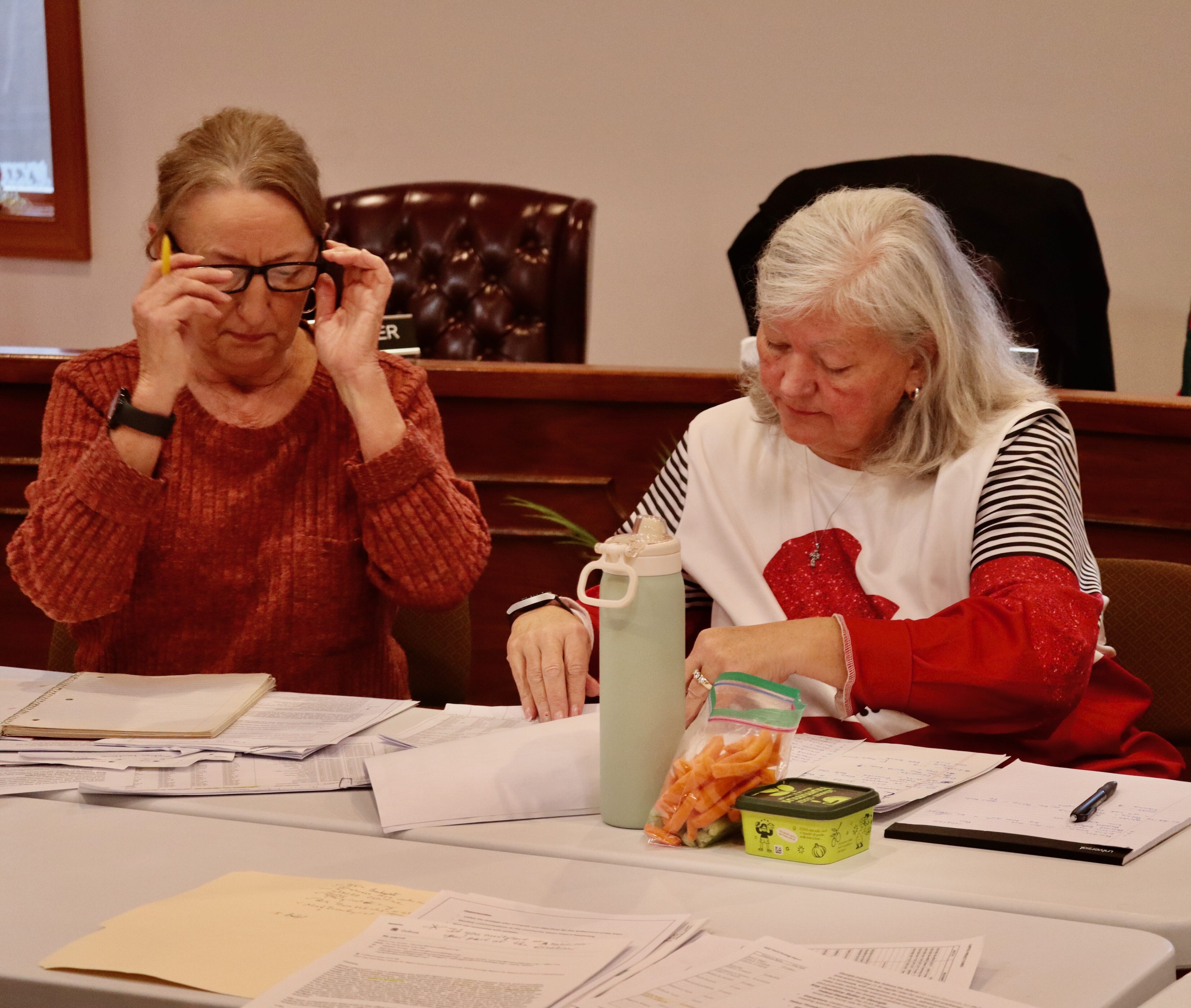 Alto Town Council Members Debbie Turner (left) and P.J. Huggins go over the proposed 2026 budget. (Patrick Fargason/Now Habersham)