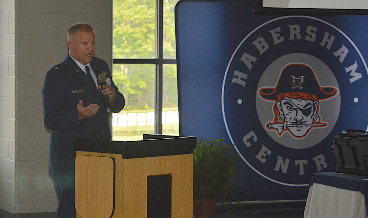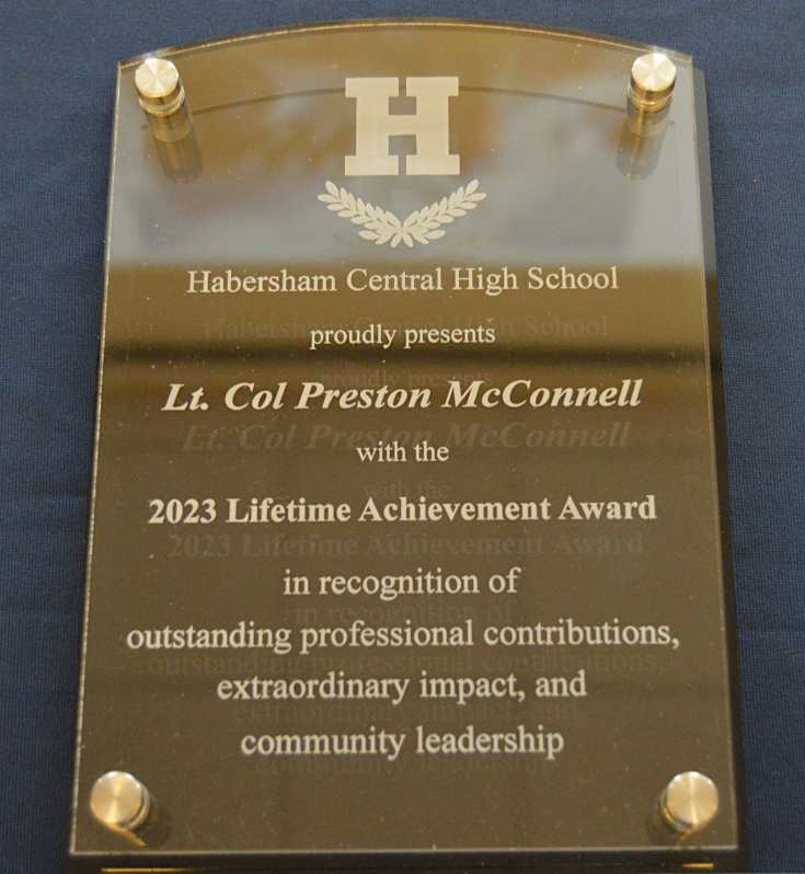 In introducing him, Stribling stated, “The entire Raider Nation is proud to welcome home this year’s recipient of the Habersham Central High School Lifetime Achievement Award, LTC Preston McConnell.”