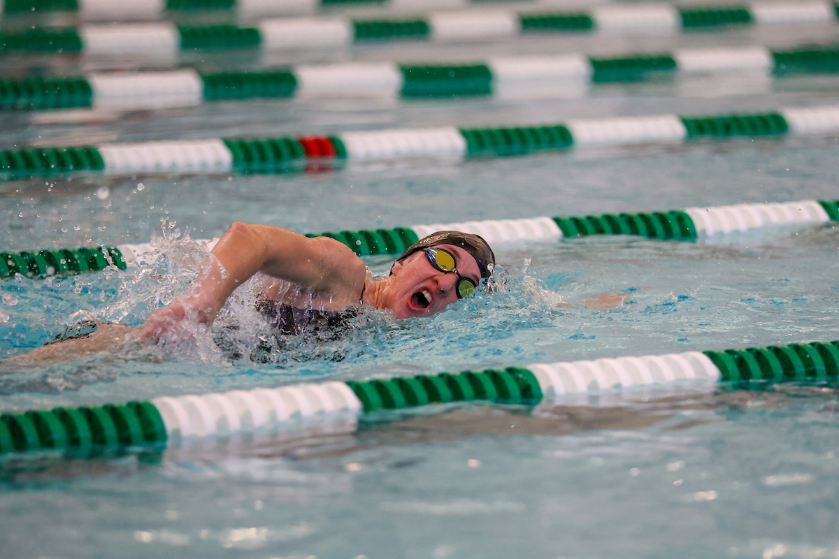 “This meet was a prelims/finals meet,” explains coach Rachel Nichols. “This means if a swimmer swam to a top-16 place in their event in the preliminary session, they earned a second swim in the finals session.”
