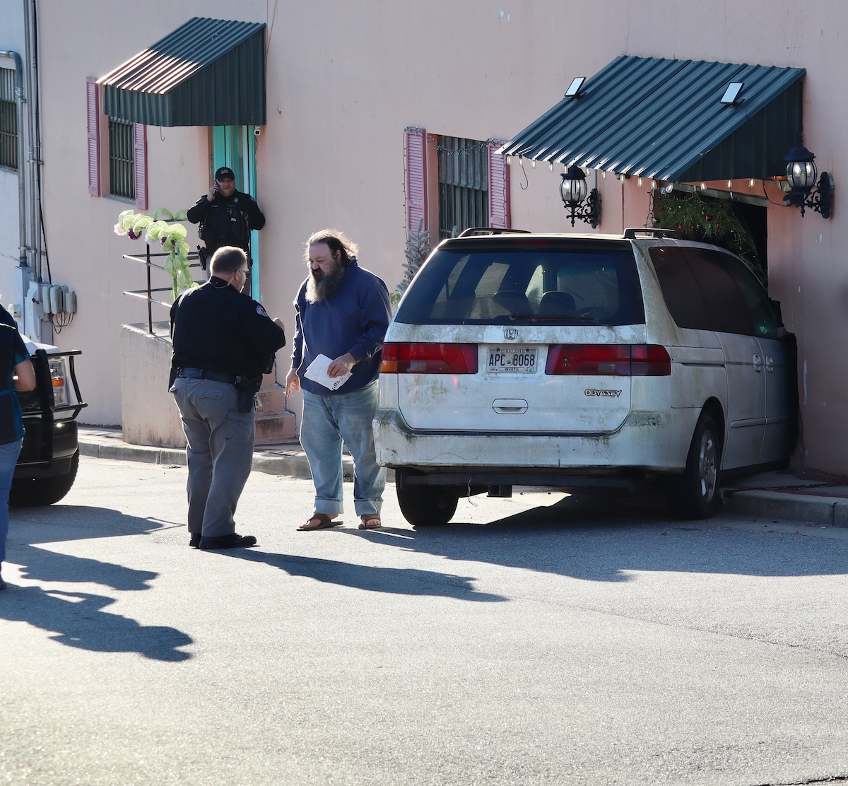 Officers with the Clarkesville Police Department responded to a 911 call reporting that a white Honda Odyssey had crashed into a building at 102 W. Water St., just off the Clarkesville Square.
