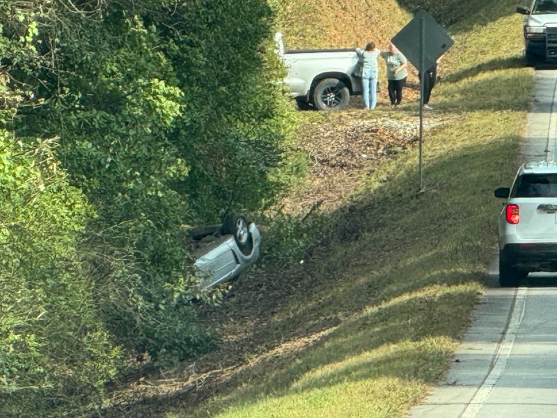 Moore says the wreck occurred when the vehicle left the roadway and overturned down a 15-foot embankment. The vehicle landed on its roof near the woodline.