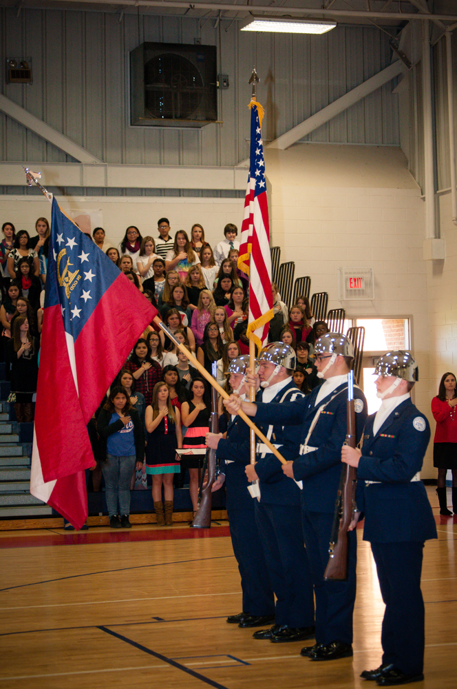 Wilbanks Middle School in Demorest hosted a community-wide Veterans Day program Wednesday. Here, veterans are escorted into the ceremony by members of Future Farmers of America.