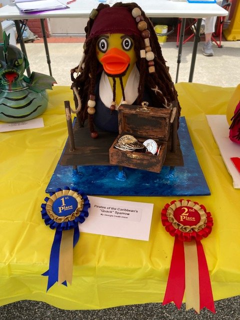 Duck race sponsors got in on the fun by decorating large yellow rubber ducks for the Dec-a-Duck contest. Festival-goers got to vote on their favorites, and the People’s Choice Award went to My Georgia Credit Union’s “Quack Sparrow.” Other Dec-a-Duck winners included Clarkesville Library’s “Quackleberry Finn.” The Northeast Georgian’s “Webster” and Elizabeth & Company’s “Quacketman” tied for third. Honorable Mention went to Cornelia Vet’s “Some Pig” from Charlotte’s Web, 1st Franklin’s “Franklin” from the book “When you Give a Mouse a Cookie,” and Hazel Grove Elementary’s “Hazelrella Goes to the Ball.”