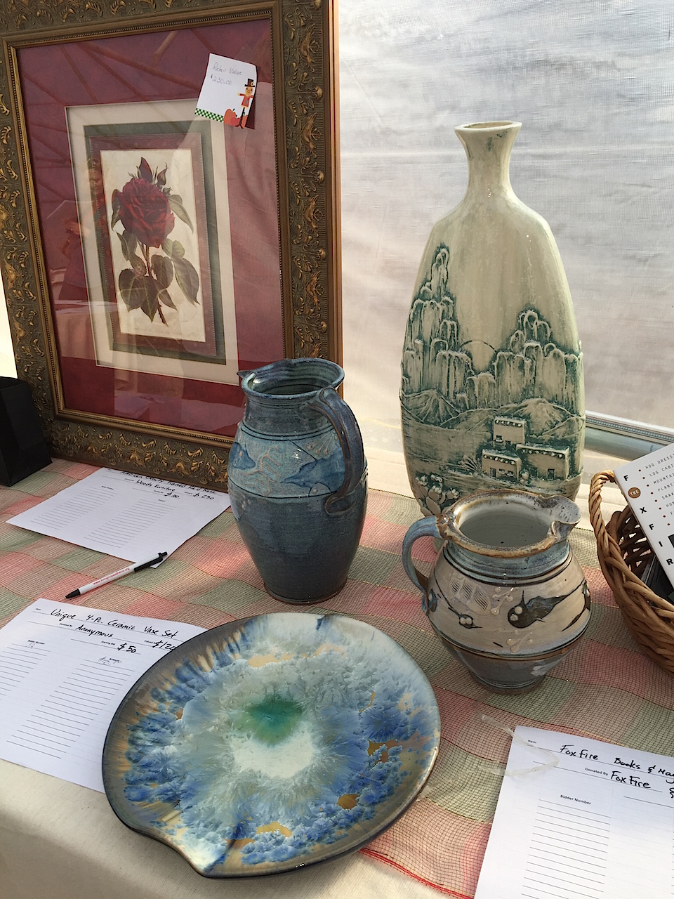 Individuals and businesses from Clarkesville, Clayton, Cornelia, Demorest, and Toccoa had donated hundreds of unique items for auction inside the greenhouse, including a turn-of-the-century handmade Cherokee Indian basket; golfing and vacation stays at Georgia resorts;  an outdoor fire pit; and a ticket for a parachuting excursion.