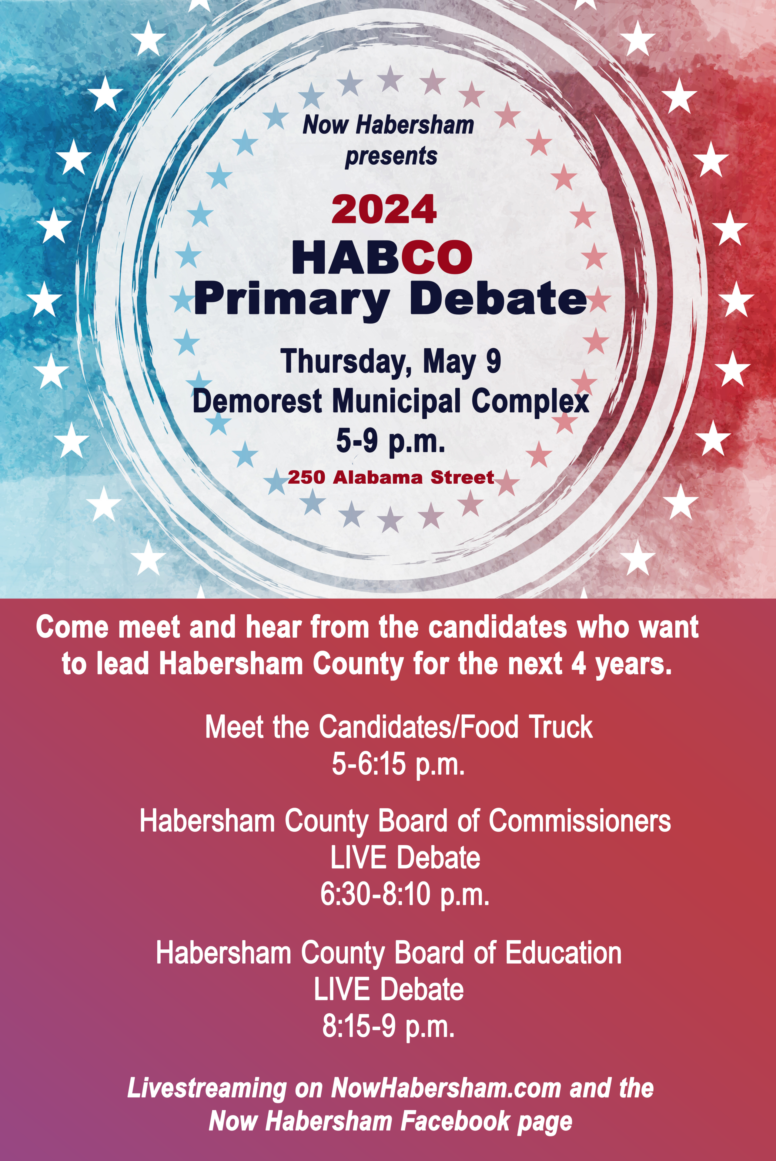 For those voters who can’t attend the debate in person, you can watch the debate livestreaming on the Now Habersham Facebook page and on our website at www.nowhabersham.com.