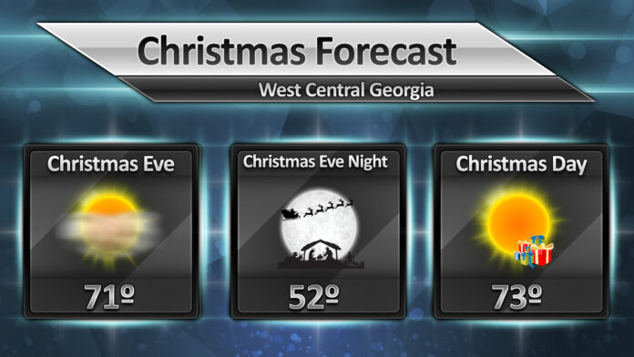 Christmas Eve is expected to feature lots of sunshine and calm winds.  Highs on Wednesday will soar into the low-70s across the region.