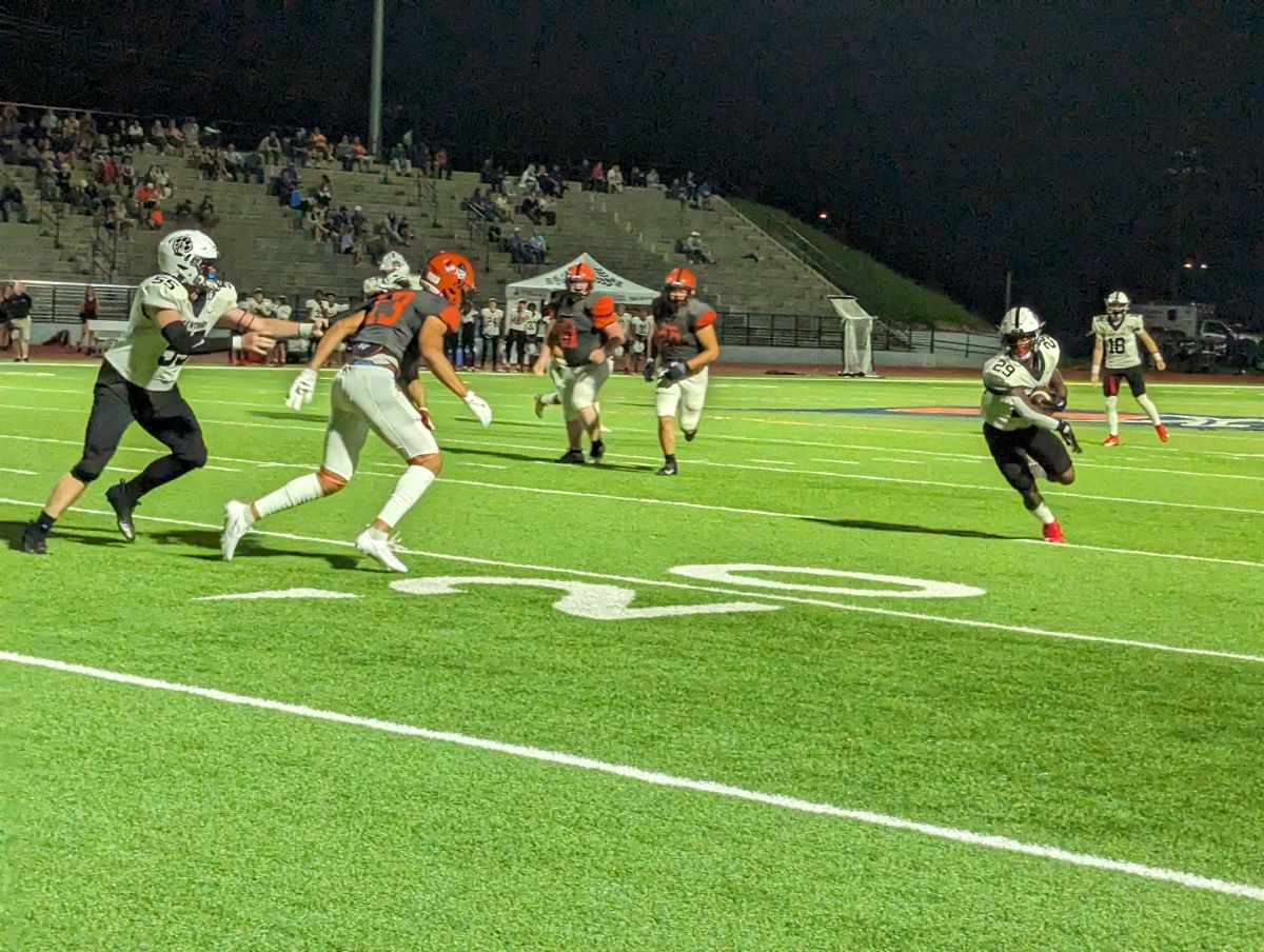 After a long battle of trading field position, senior Carter Barrett (3 receptions, 89 yards, 1 touchdown) took a quick pass on the left side of the field. He broke a touchdown and sprinted the rest of the 70 yards to the endzone untouched for a 14-0 lead with 13 seconds left in the first half.