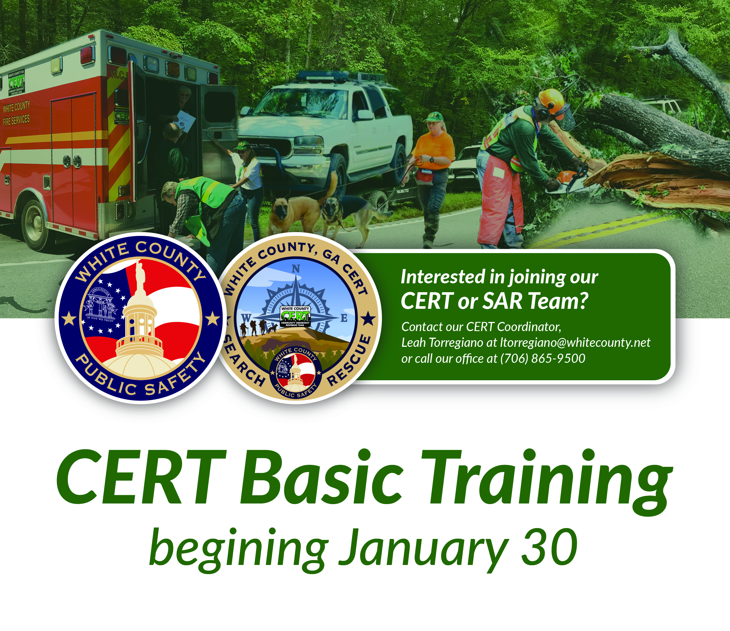 White County’s Community Emergency Response Team (CERT) invites the community to attend their basic training course beginning Monday, January 30, 2023. The White County CERT Team is a community of volunteers who train, educate and develop skills necessary to assist their community and first responders in the event of an emergency.
