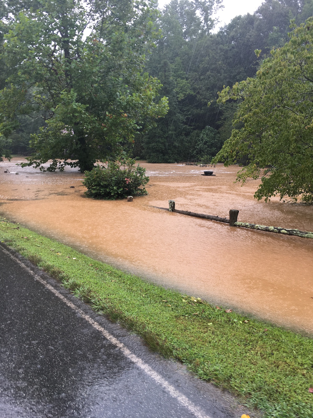 Chattahoochee River overflowed the riverbank beside Troll Tavern at 1157 hrs.