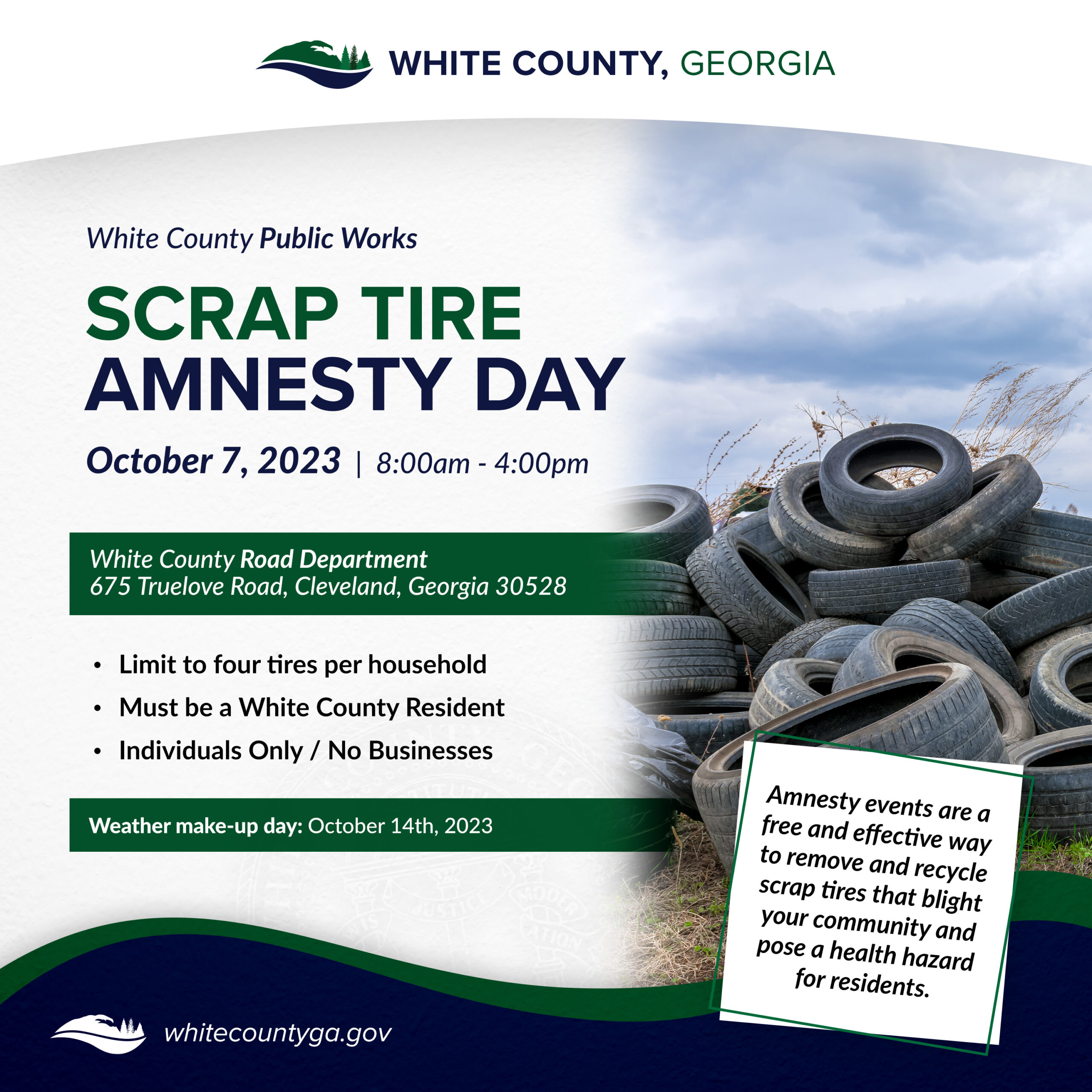 Tires can be a significant environmental hazard when improperly discarded. This Scrap Tire Amnesty Day offers an opportunity for White County residents to safely and conveniently dispose of their old and unwanted tires at no cost.