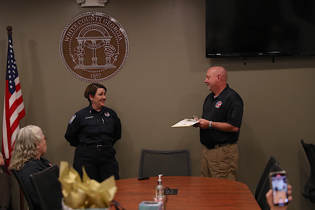 White County Fire Services honored Newberry and Alexander during the socially-distanced ceremony Monday at the White County Emergency Operations Center. Weaver was pinned as the new chief in front of his peers, family, and elected officials.