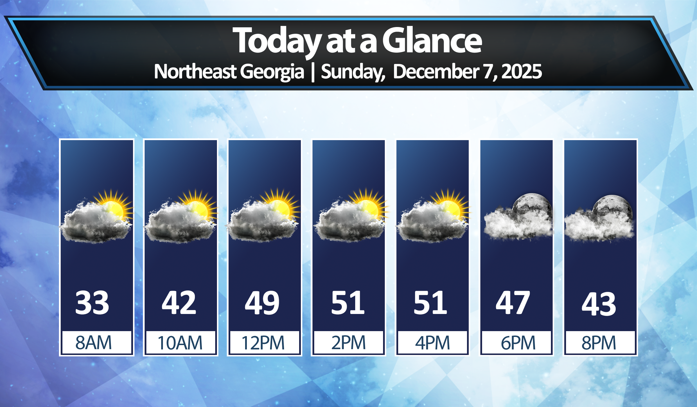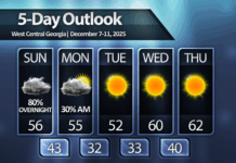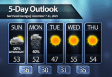 High temps in Northeast Georgia will return well into the 40s by Sunday afternoon under sunny skies.