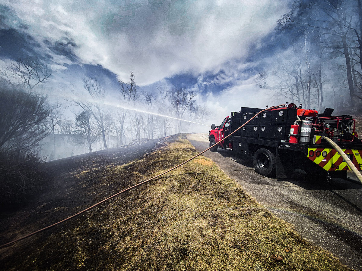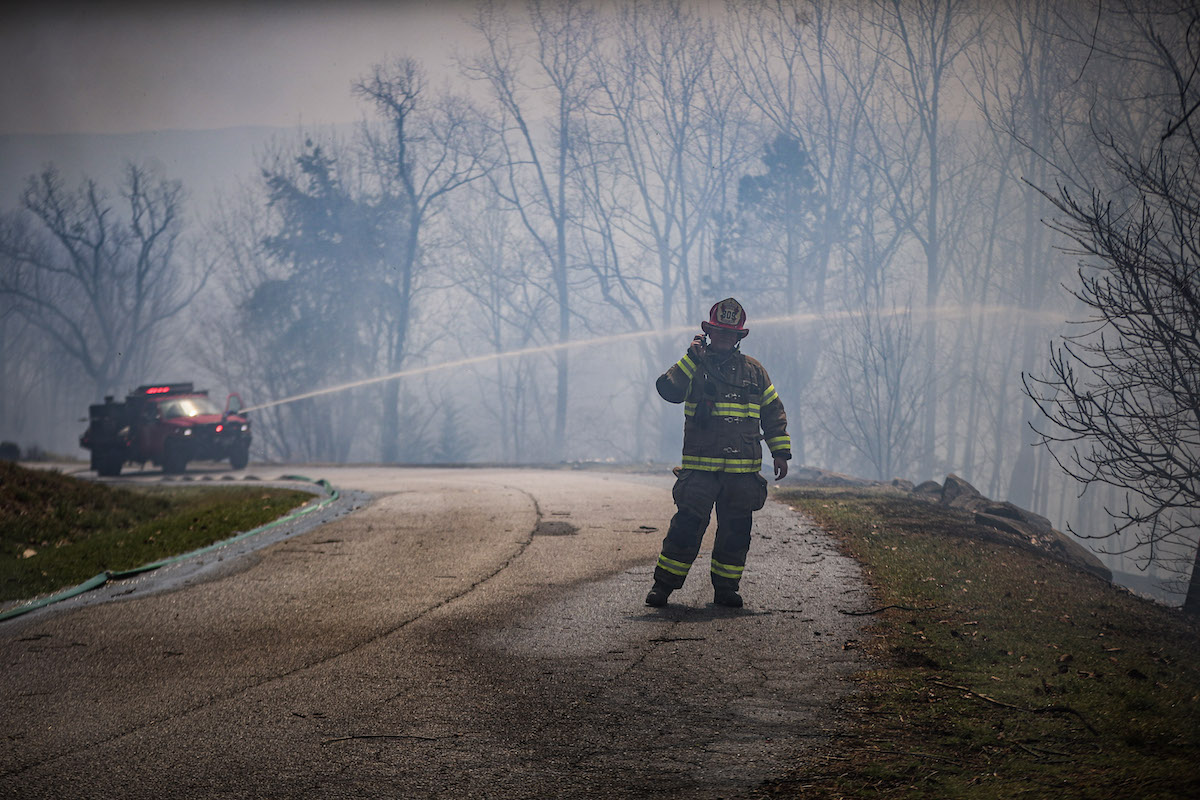 With the woods burning mere feet from his home, Tatum grabbed a garden hose. So did Dolph, who said it’s the first time in nearly two decades of living there that a woods fire has come this close to his family’s home.